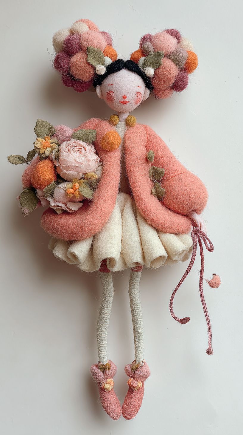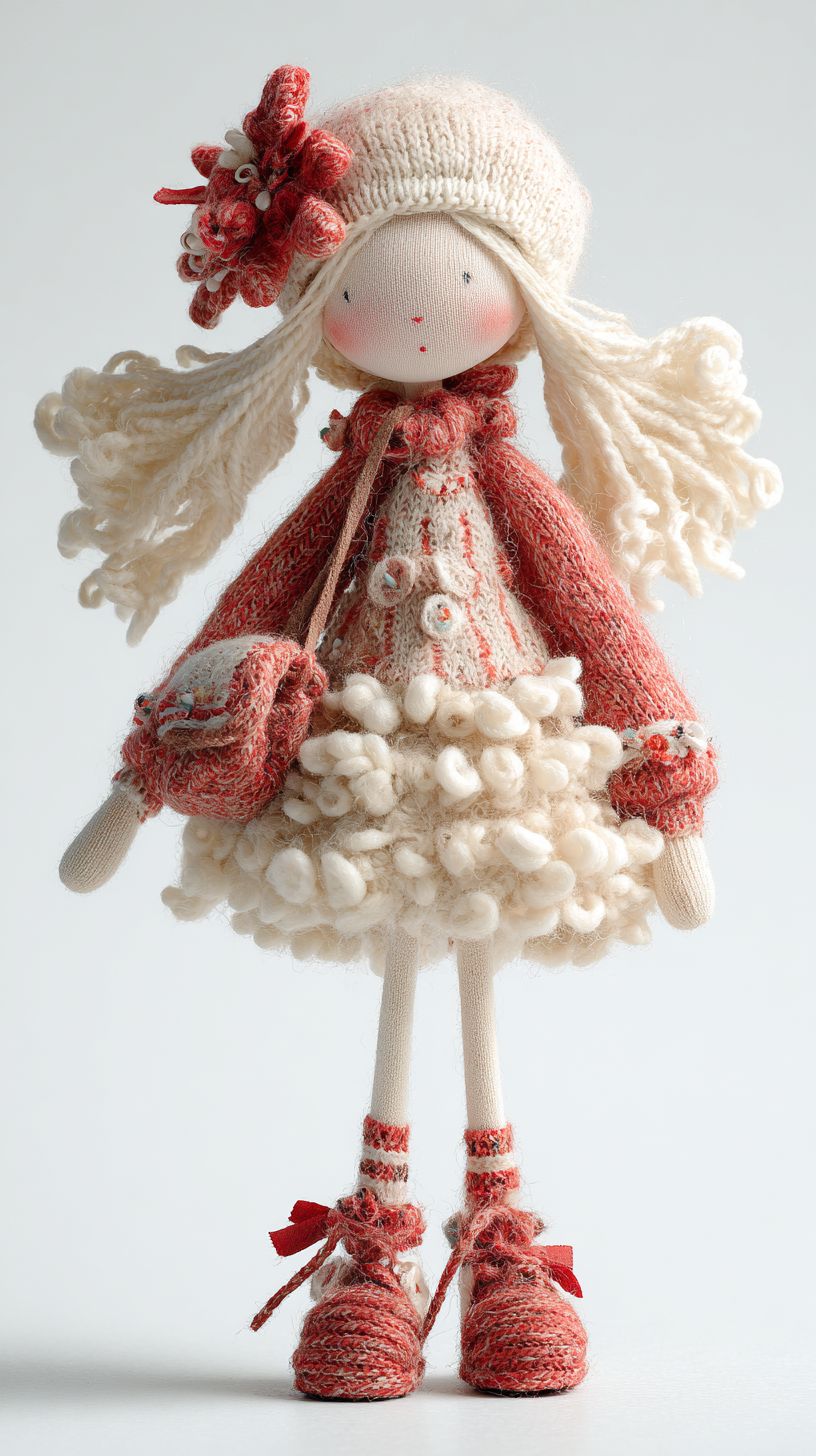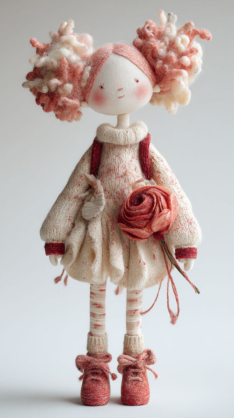 A very detailed, plush, felted girl. Adorable and lovely! white background --ar 9:16 --profile 13tugaw --v 7.0