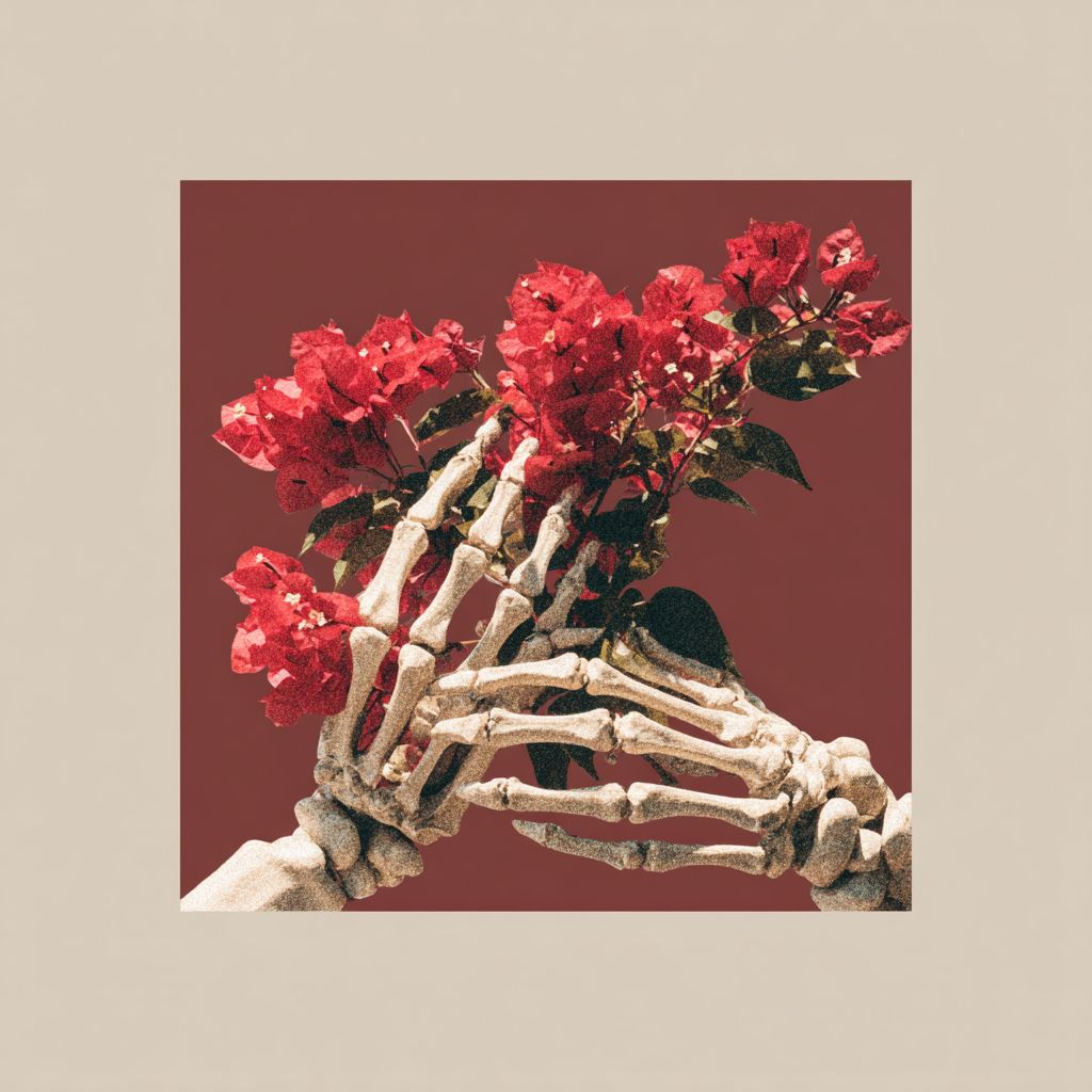 專輯單曲封面:兩隻骷髏手互相握住,中間是一朵綻放的紅色花