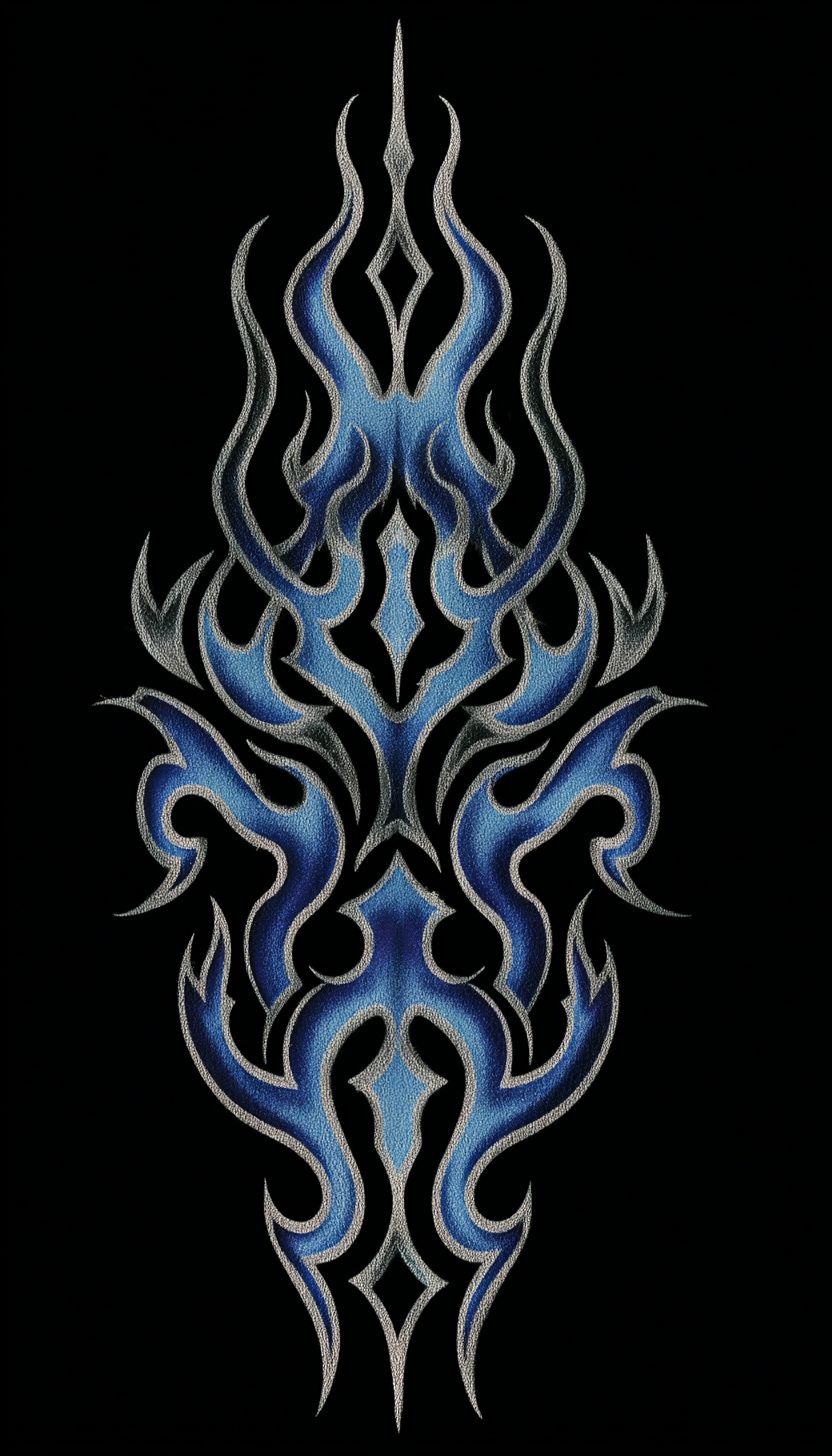 黑色背景上的細長垂直3D鉻質部落圖案