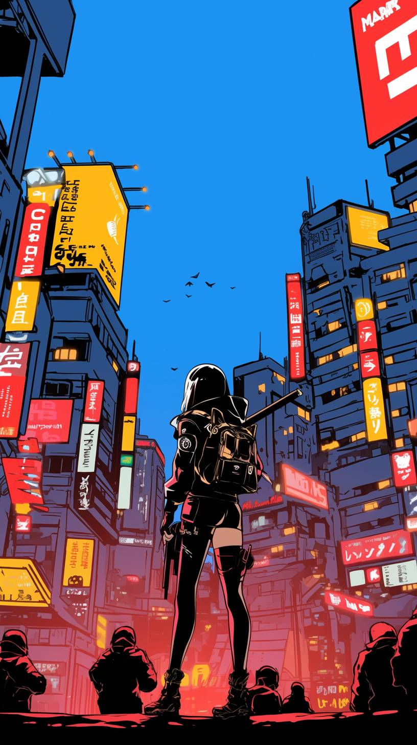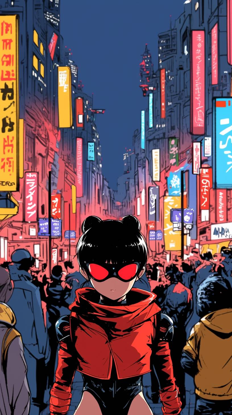 Cortana in a neon-lit cyberpunk city, blending in with the bustling crowd, atmospheric and edgy --sref 333114312 --niji 6 --ar 9:16