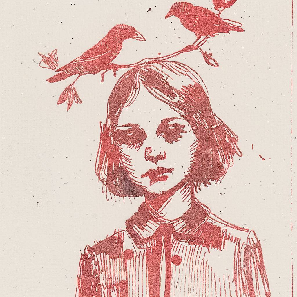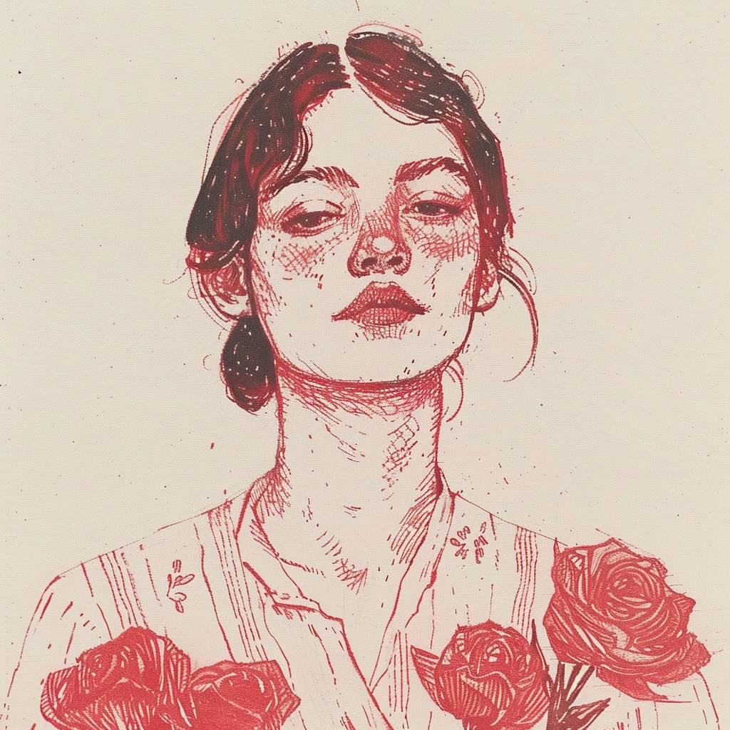 極簡主義,插圖,創造一個誇張的大頭蒙娜麗莎,使用鮮豔的水彩。表情應誇張、可愛且顽皮,背景簡潔。