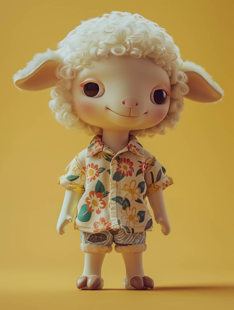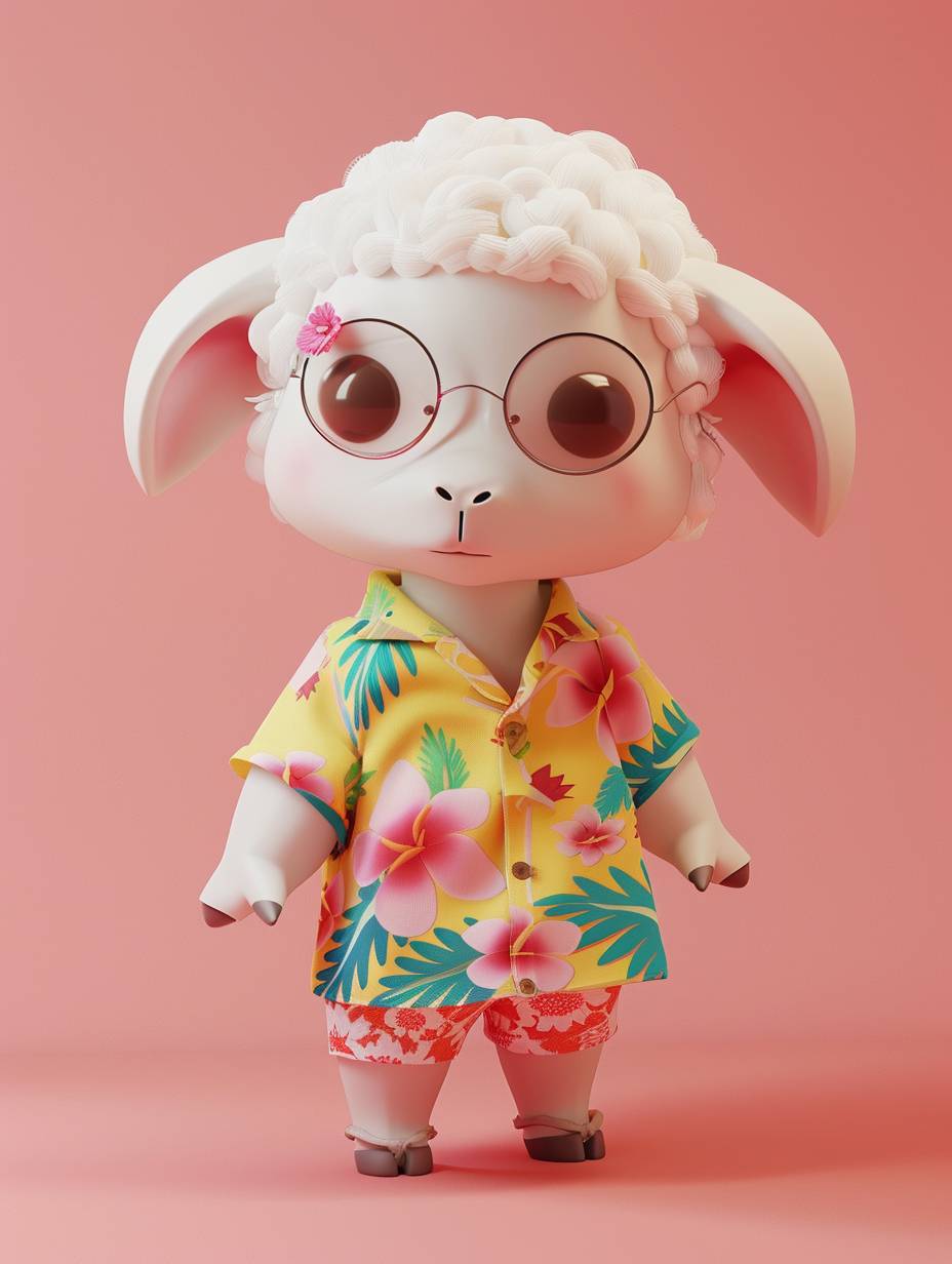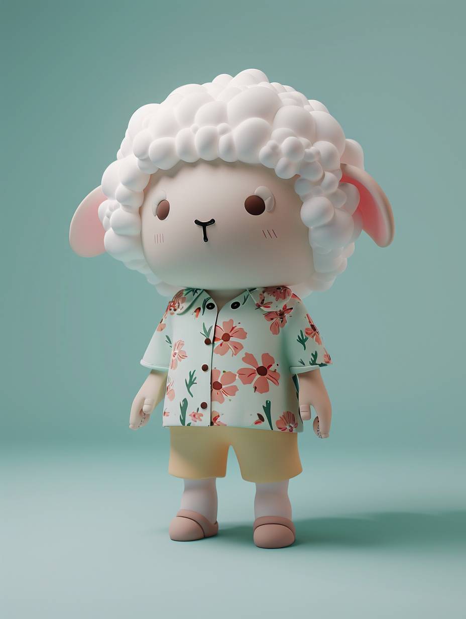 Blind box style, a sheep, chibi, Floral shirt, little shorts, standing, cute, simple design, few details, clean background, C4D, natural lighting, best quality, 8K, 3D, HD, OC renderer --ar 3:4 --v 6.0