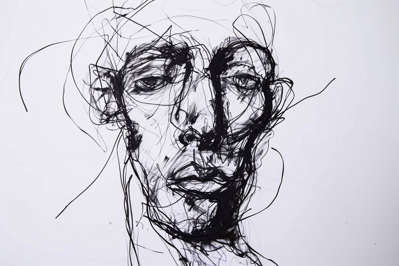 簡筆畫風格的人物肖像,低細節手繪角色塗鴉,黑色墨水在白色背景上的塗鴉線條,簡單形狀