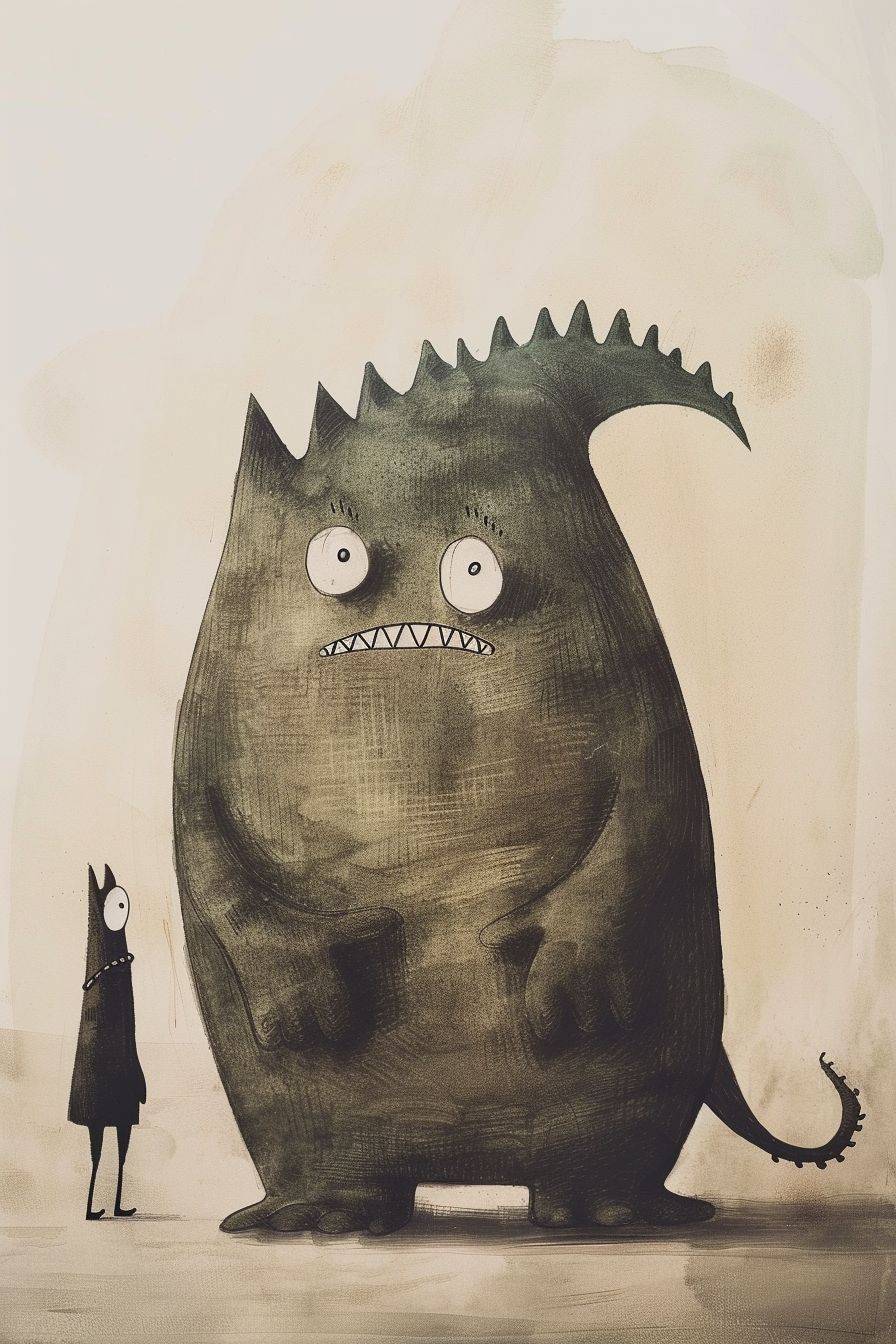 illustration by Jon Klassen of a funny monster --ar 2:3 --v 6 --stylize 50