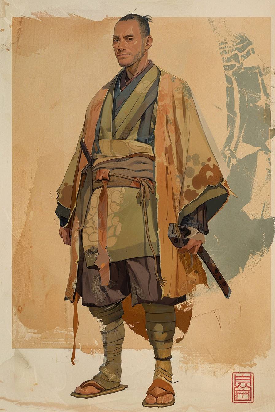 in style of Hiroshi Yoshida, character concept design, half body --ar 2:3 --v 6.0