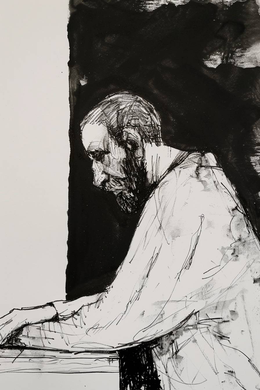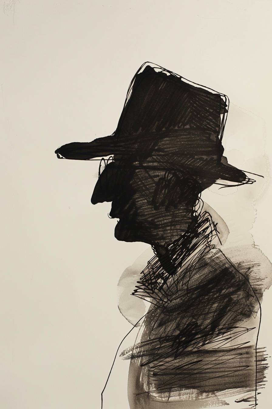 米爾頓·艾弗里風格的人物,側面視圖的墨水藝術