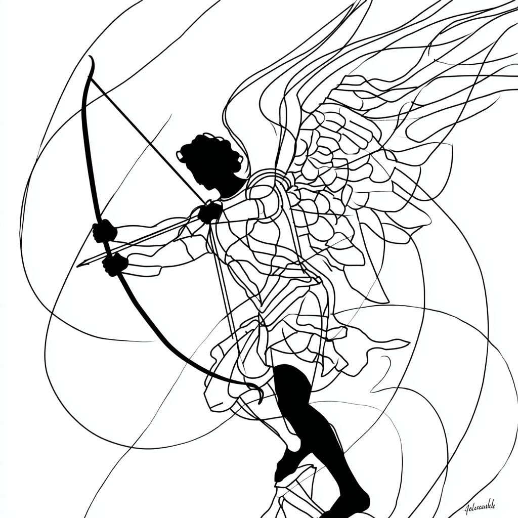 米迦勒大天使呼喚戰爭,纖細的藝術線條,黑色在白色背景上,極其簡單,簡單的平面設計