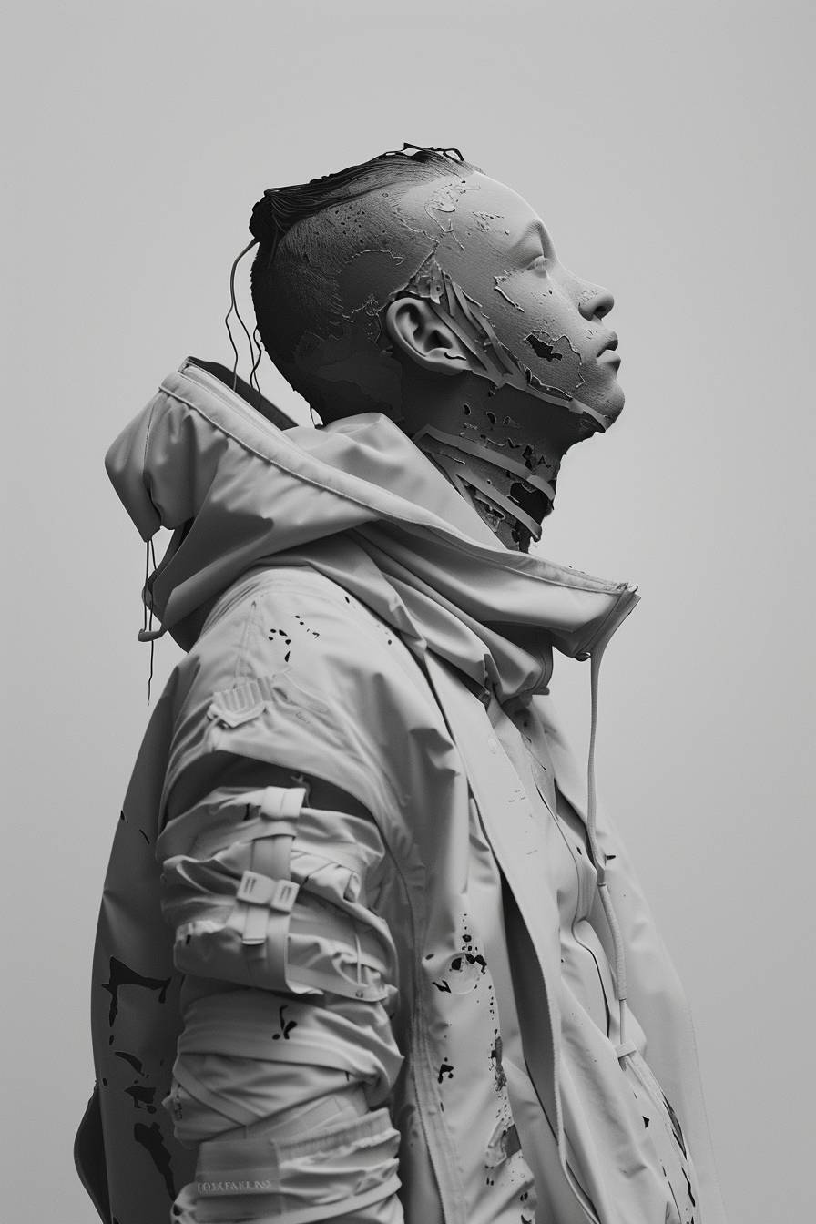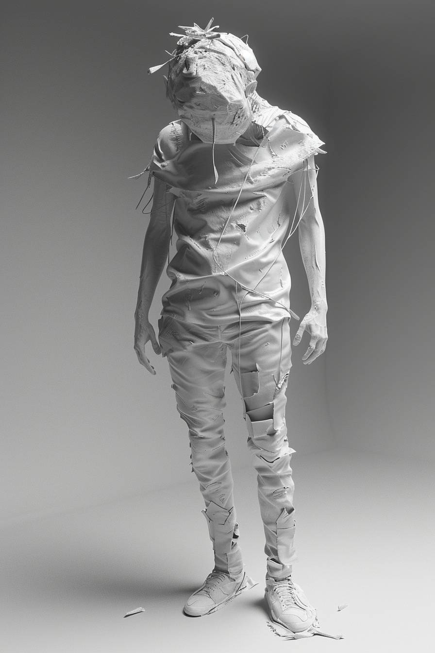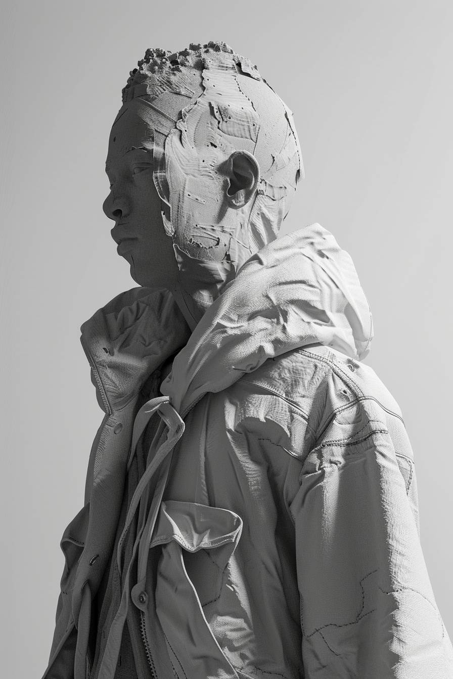 in style of Daniel Arsham, character concept design, half body --ar 2:3 --v 6.0