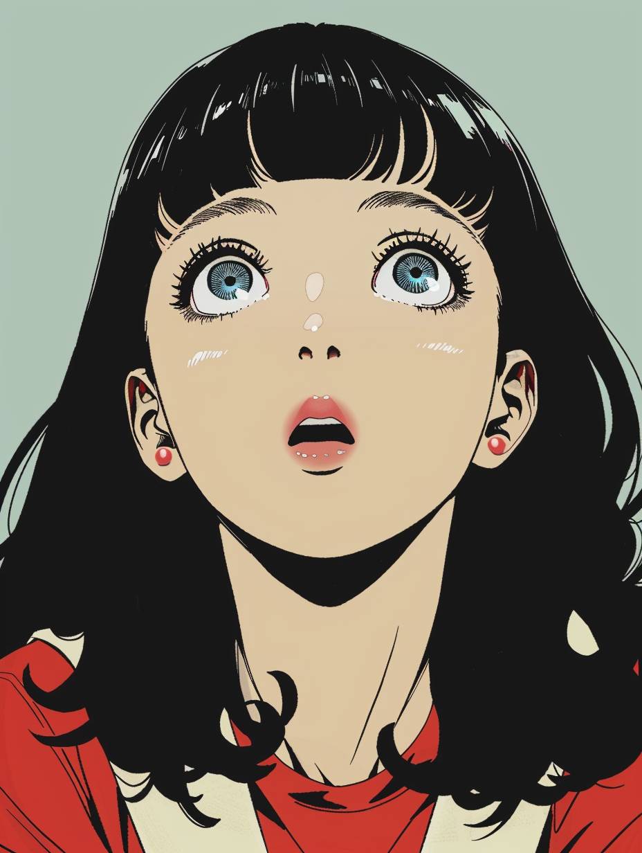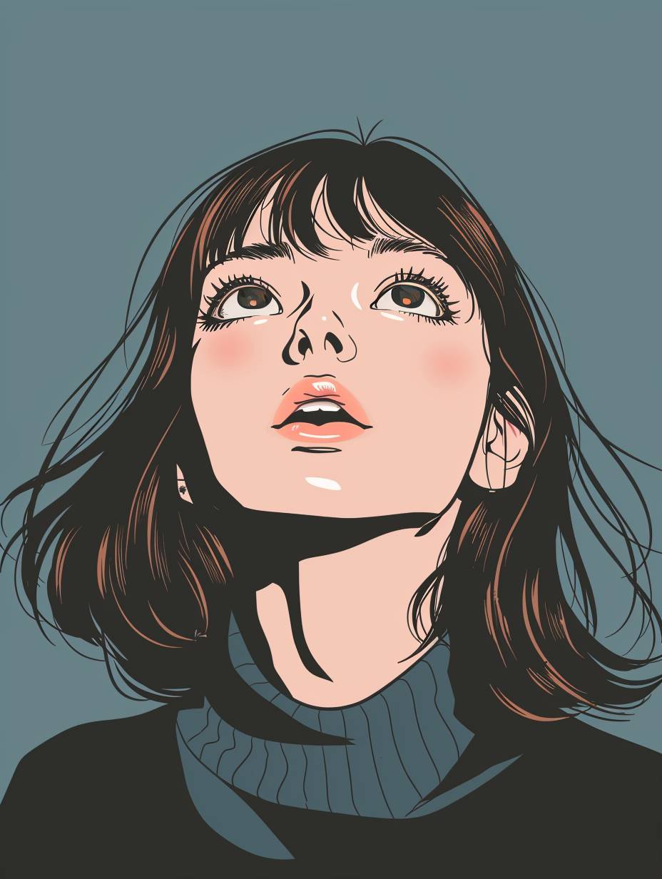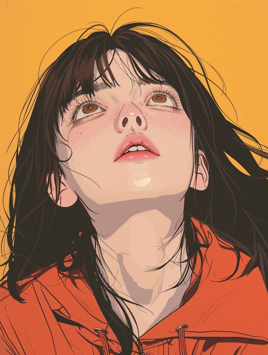Rika Mashiro, looking up at the camera, Japanese anime style, flat color illustration --ar 3:4 --v 6.0