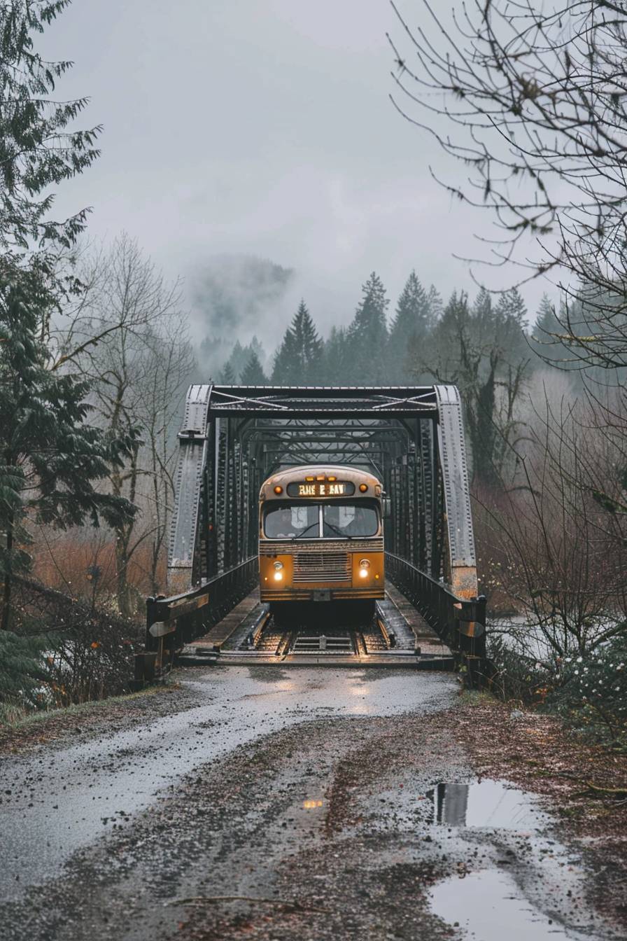 bus crossing over a bridge --ar 2:3 --v 6.0