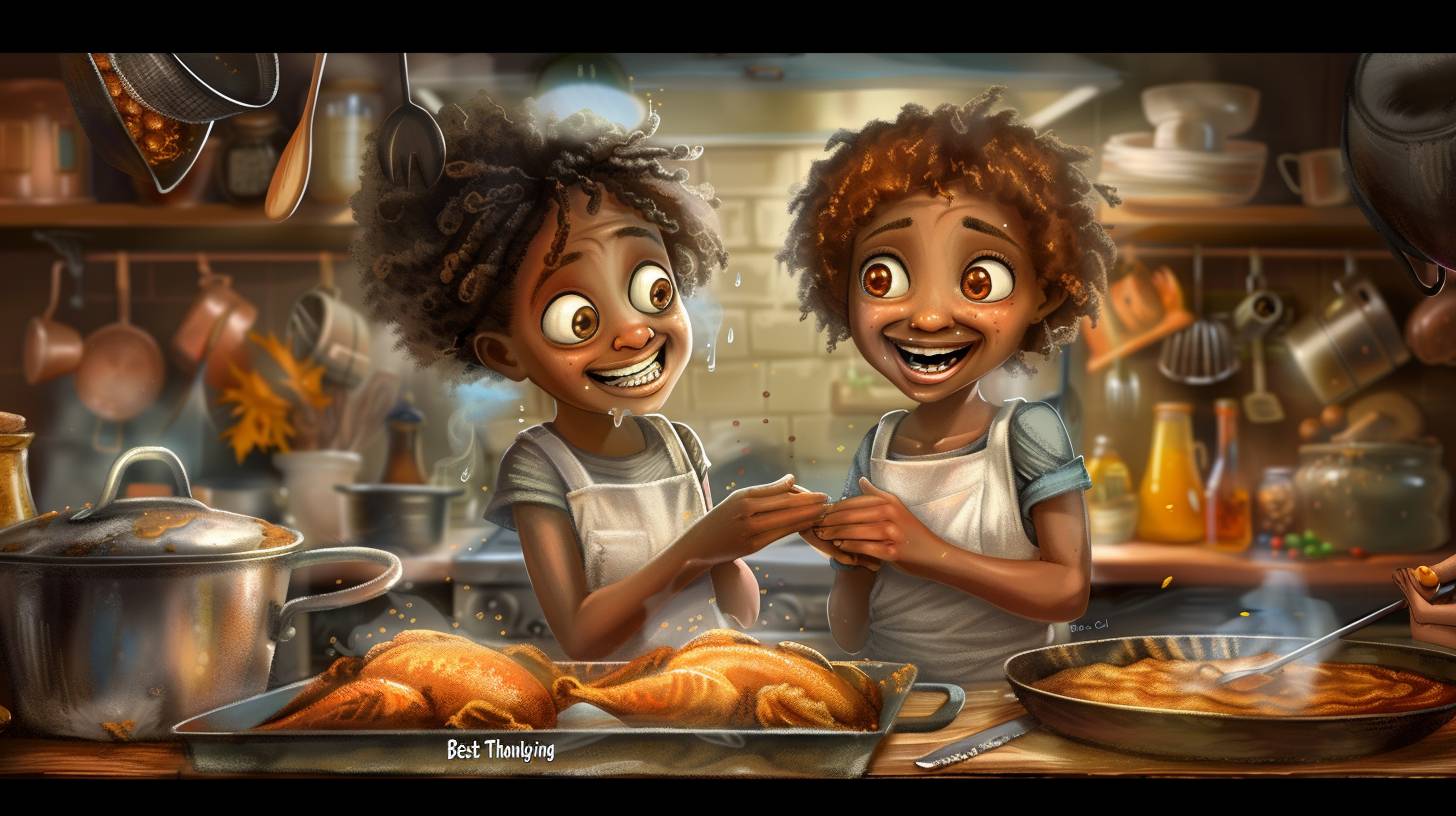 Toon Harriett and Wilma compete in food contest "Best Low-Cal Thanksgiving". Gourmet, --v 6.0 --s 1000 --p 5tnbgrs --ar 16:9