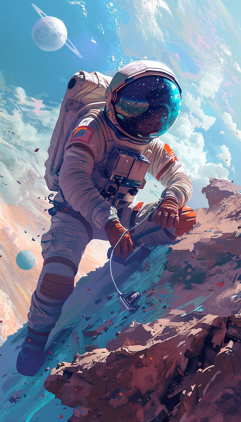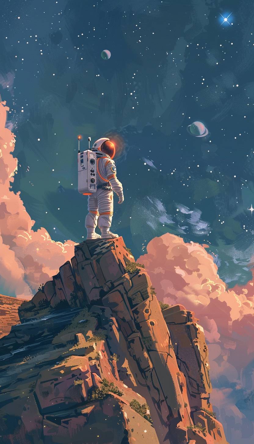 in style of Atey Ghailan,Space explorer venturing into uncharted realms --ar 4:7 --v 6.0