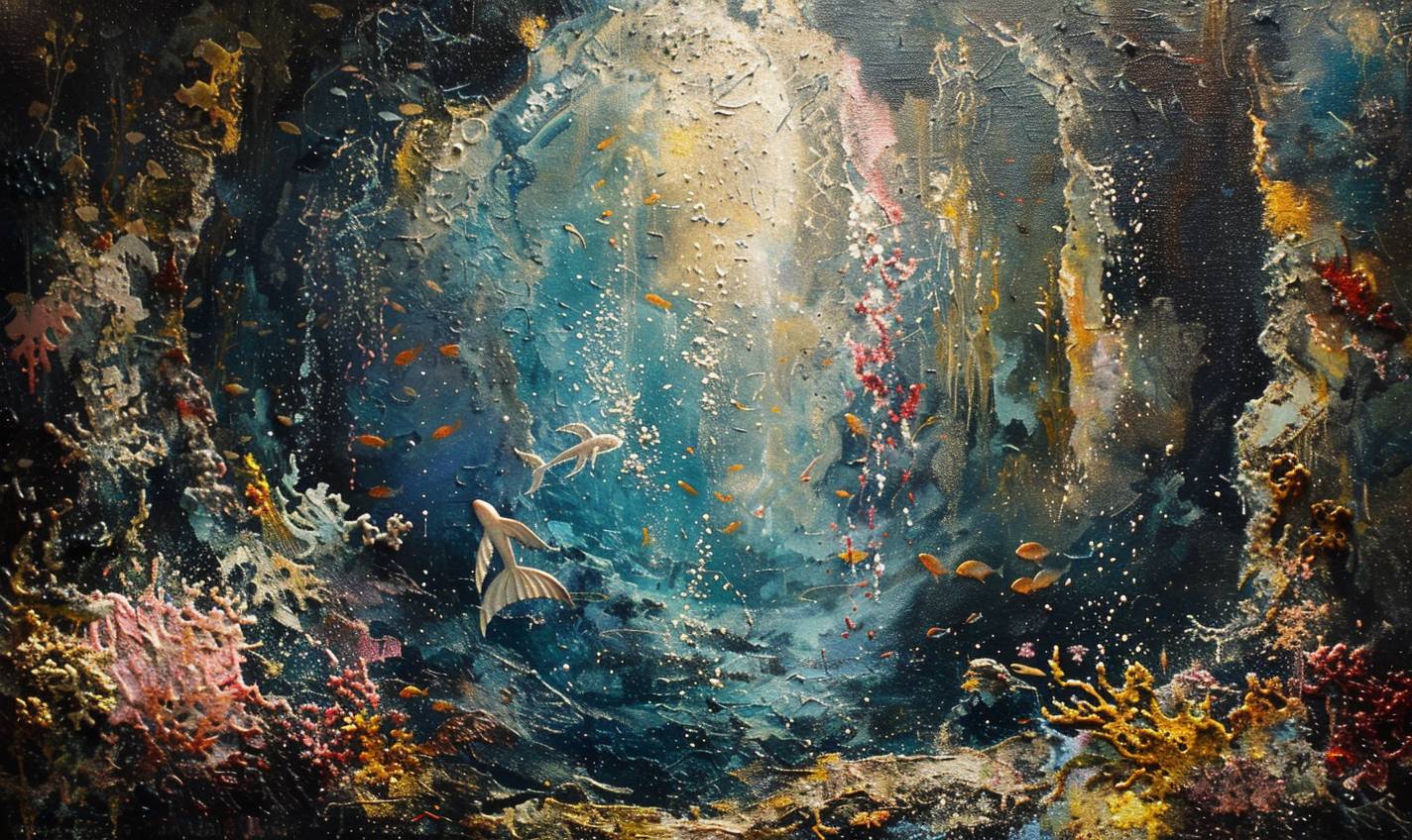 尤金·加列-拉盧風格的水下洞穴,閃閃發光的美人魚