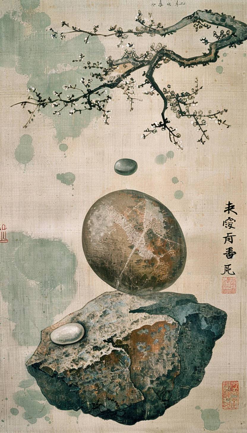 in style of Katsushika Hokusai,Mystic stones imbued with ancient power --ar 4:7 --v 6.0