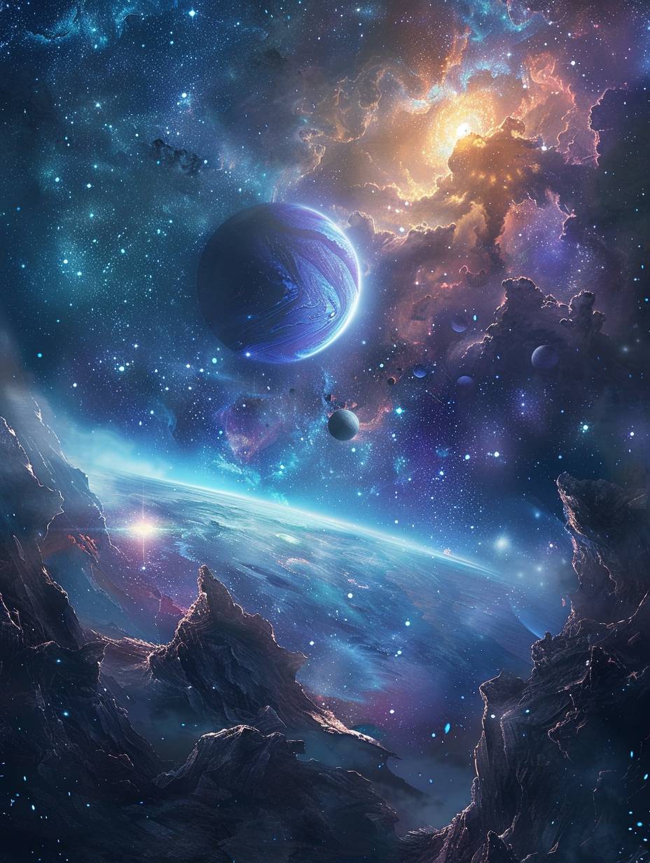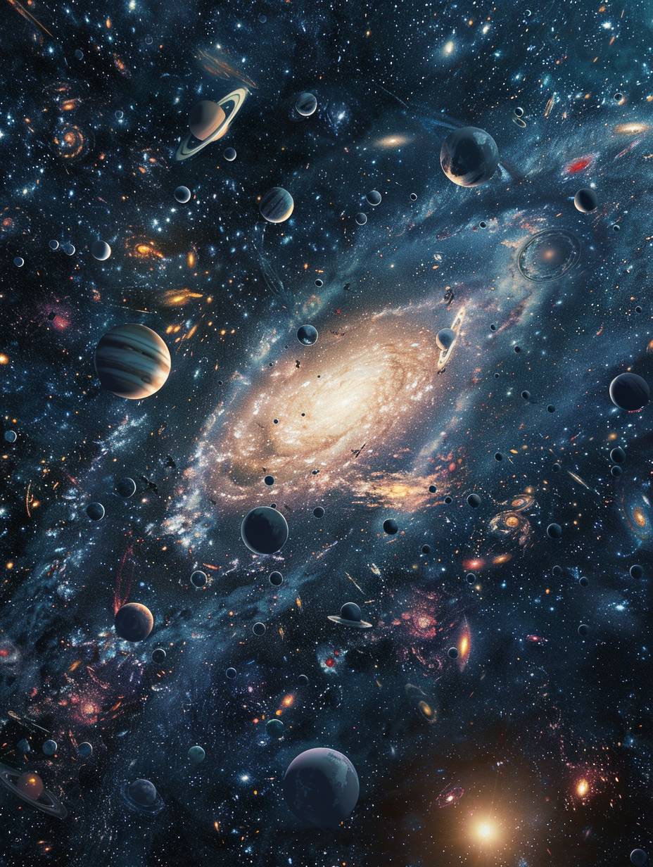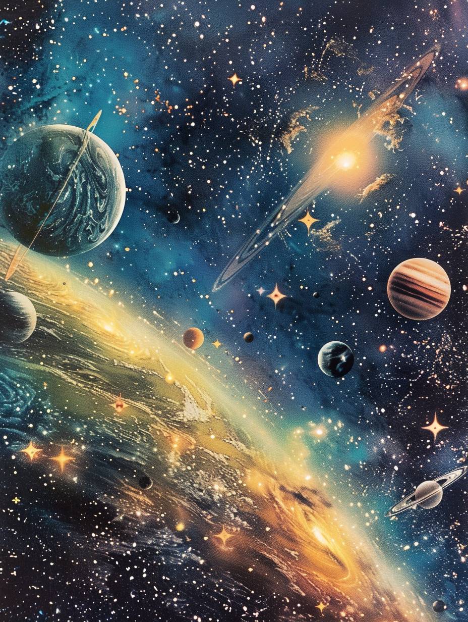 一個由星星和行星組成的[主題],背景是浩瀚的宇宙