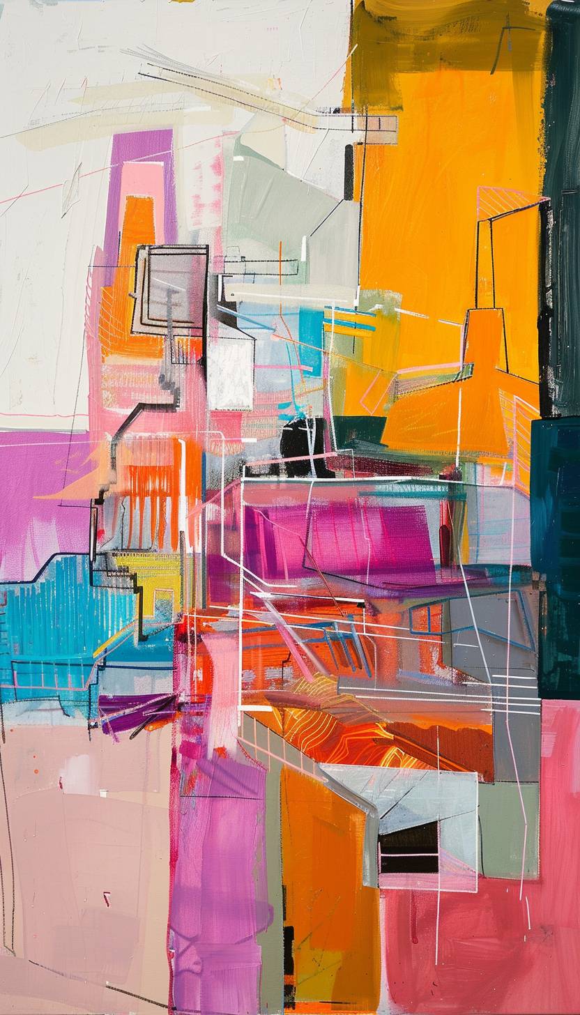 in style of Amy Sillman,Mechanical marvels of a futuristic metropolis --ar 4:7 --v 6.0