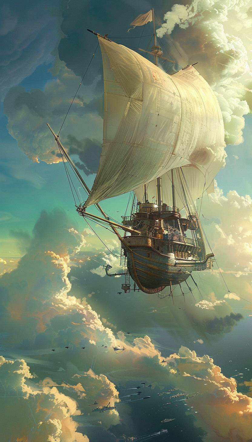 蒸汽動力的飛船在雲端飛翔