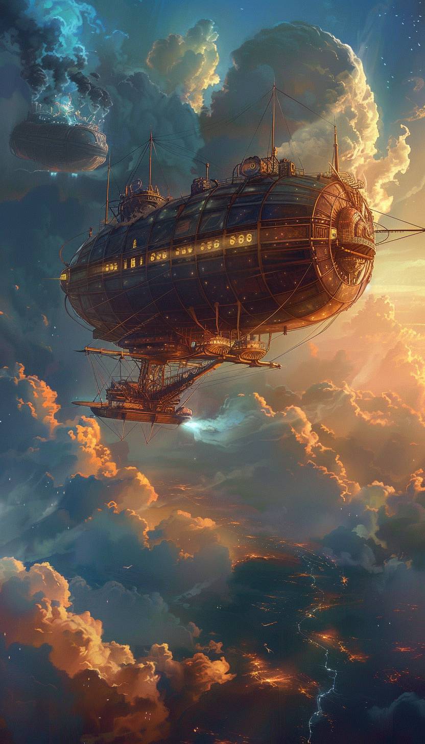 蒸汽動力飛船在雲中翱翔