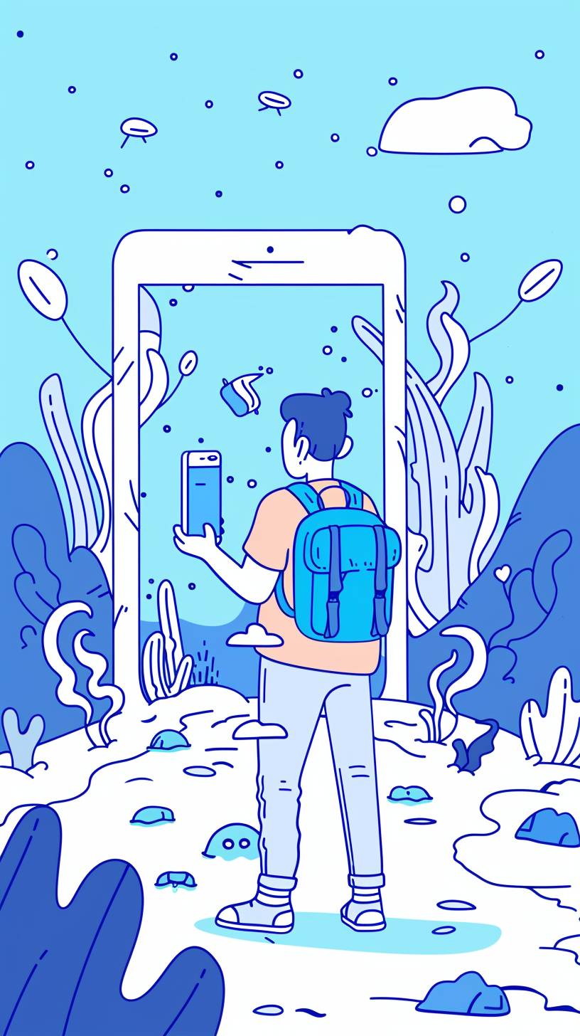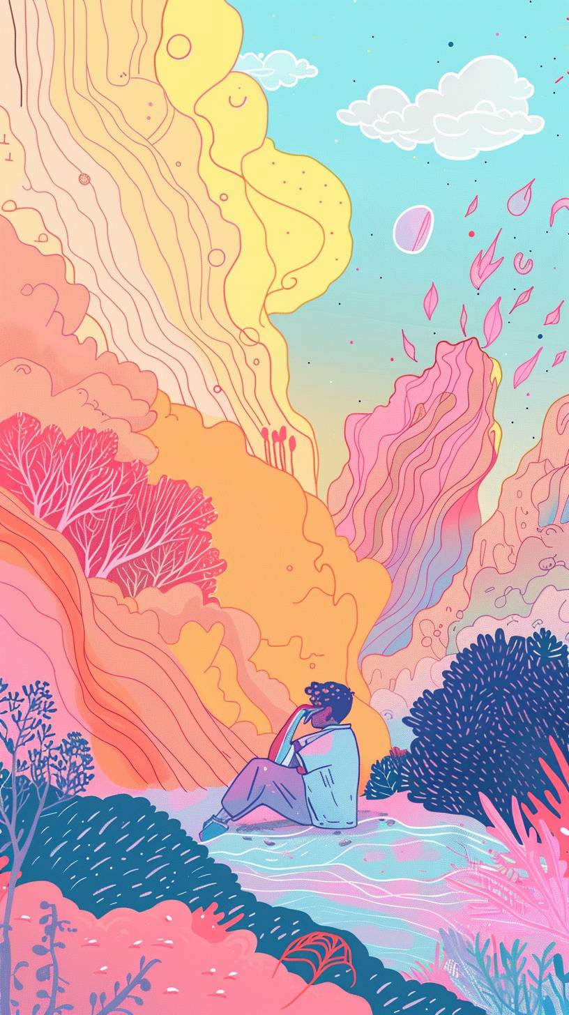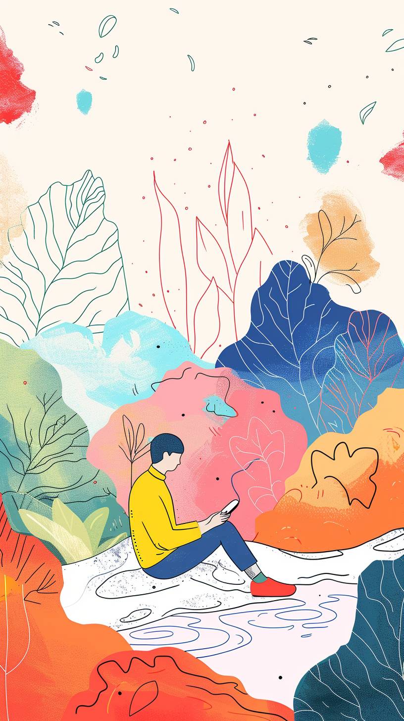 a landing page background line art cute image for a native app that helps users to capture, organize and preserve their thoughts and experiences on the go --ar 9:16 --v 6.0