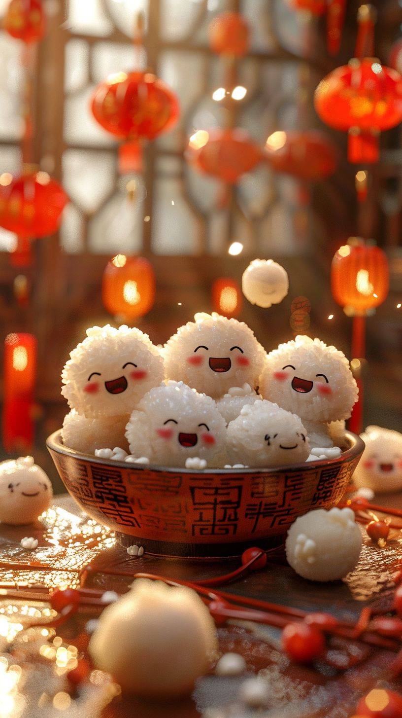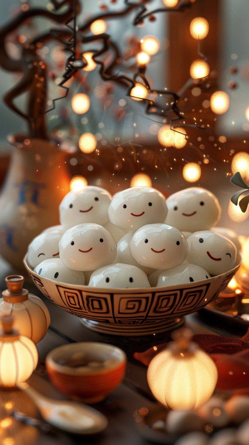 Miniature, super cute clay world, a huge bowl with many lovely rice dumpling, lovely expression, Chinese Yuanxiao (Filled round balls made of glutinous rice-flour for Lantern Festival) Festival, tilt movement, excellent lighting, volume, brush rendering,, excellent lighting, volume, brush rendering, 3D, super detail --ar 9:16 --stylize 250