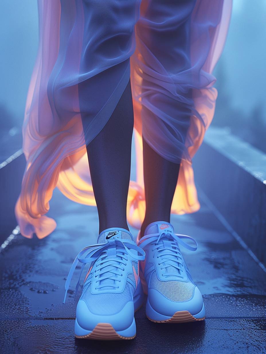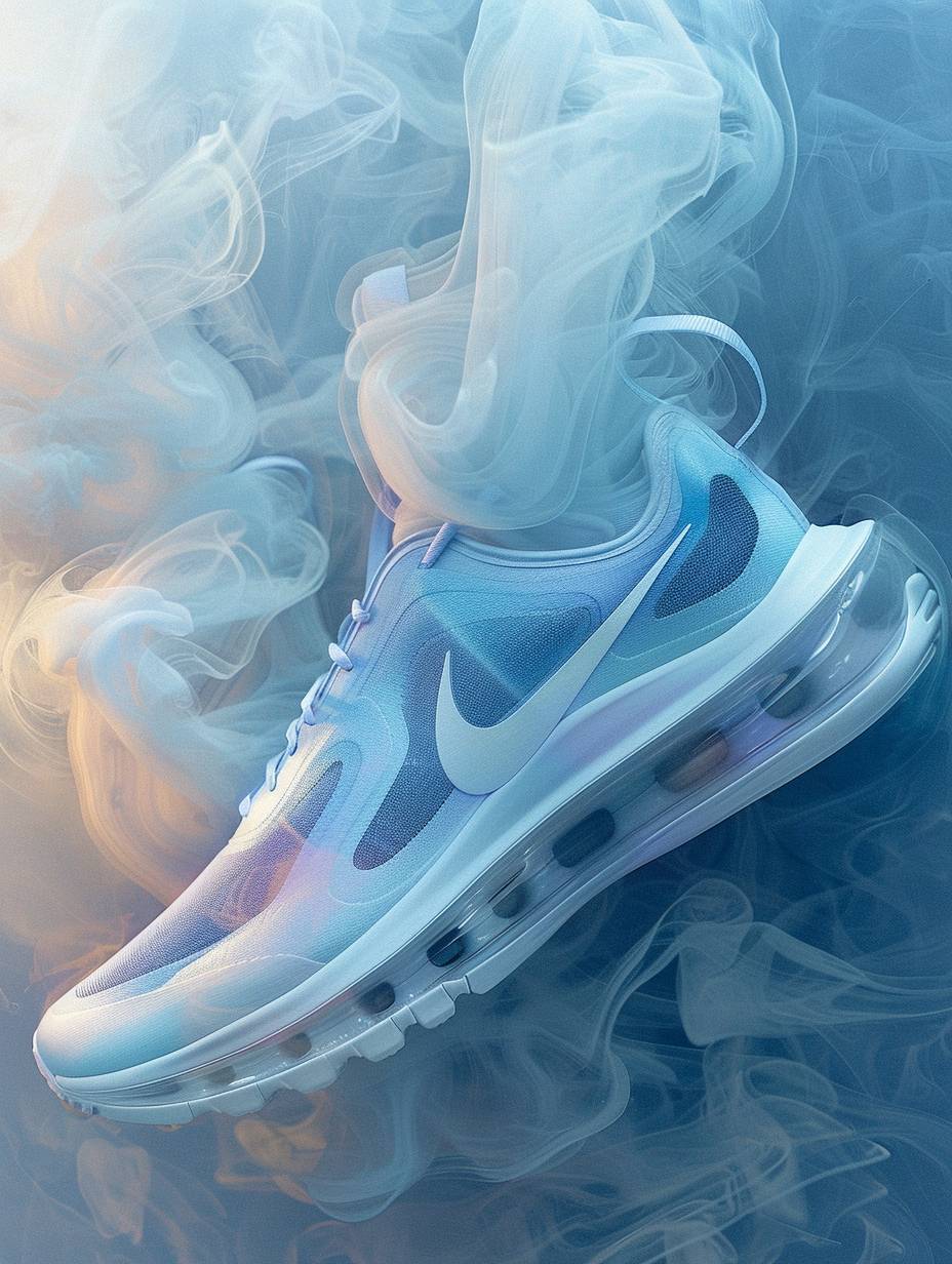 耐克空氣鞋,耐克標誌,尼康攝影,辛烷渲染,虛幻引擎5,超詳細,漫射光照,時尚,照片寫實主義,300mm,高清