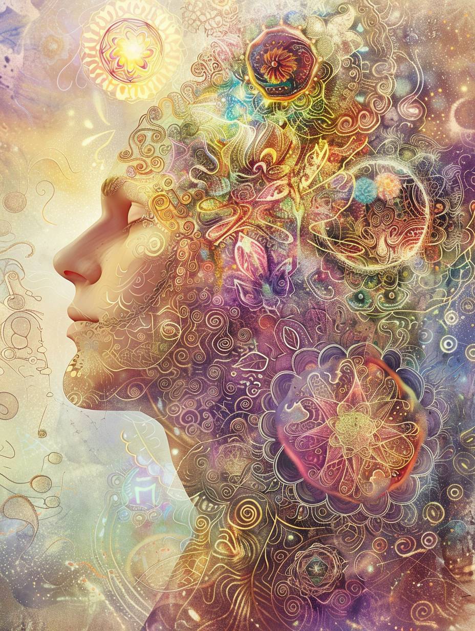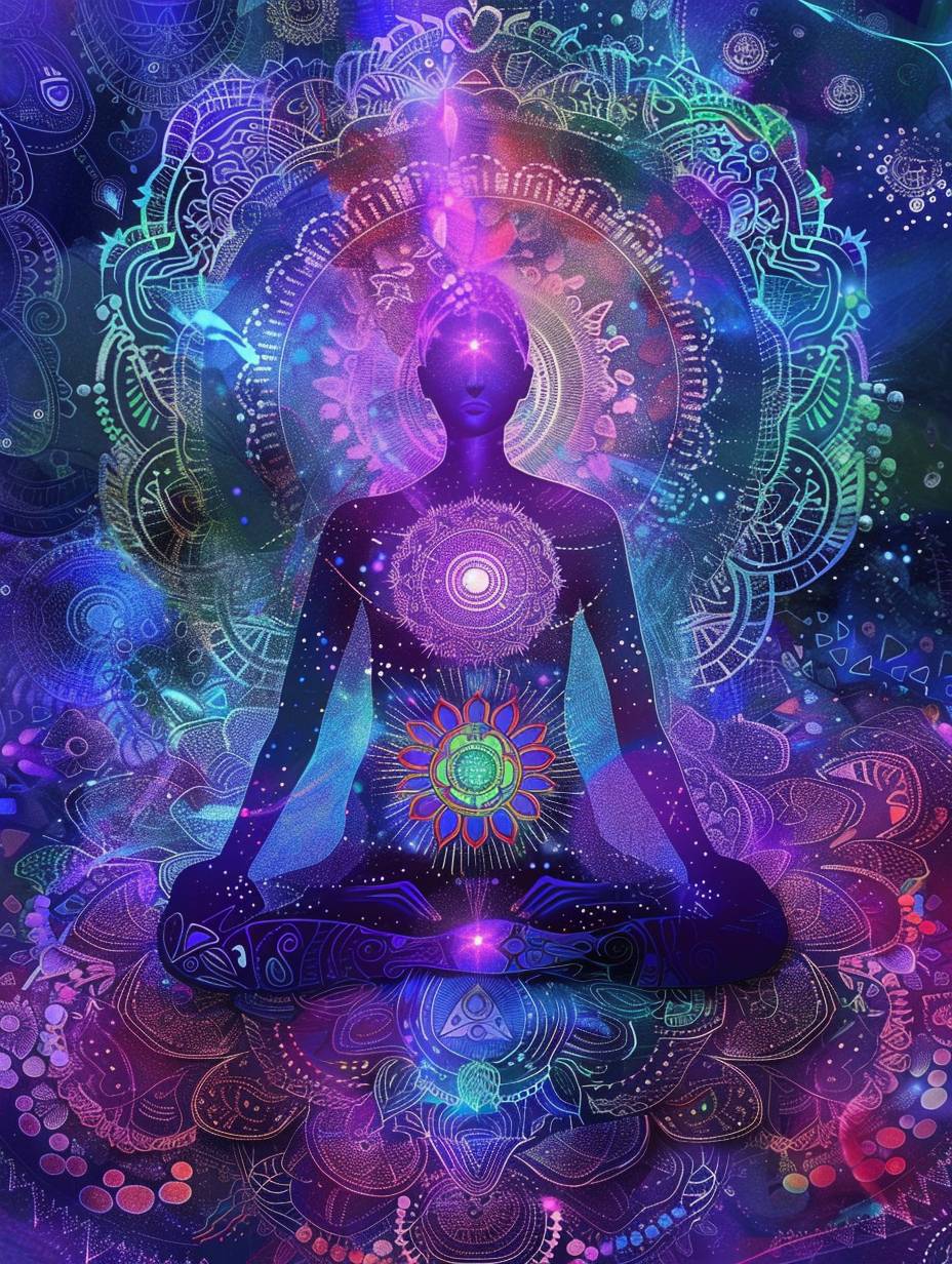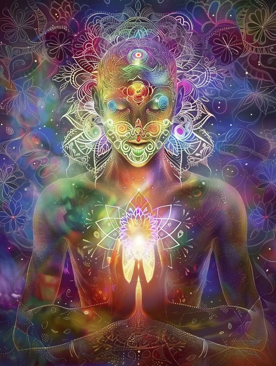 Calming art love illustration of [SUBJECT], spiritual imagination, chakras, intricate detail and soft lighting --ar 3:4 --v 6.0