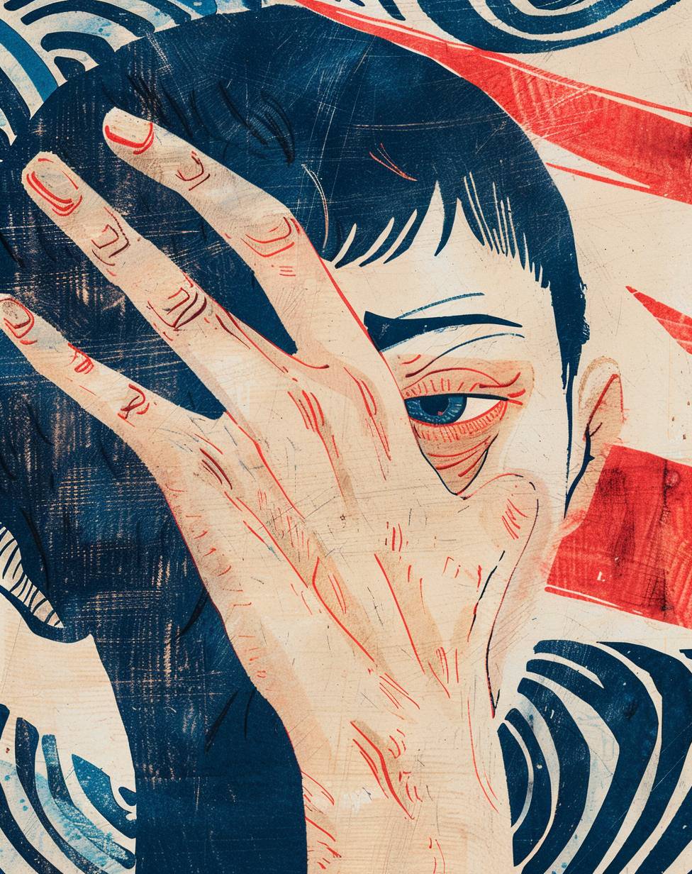 borderline personality disorder, psychedelic minimalist block print --chaos 25 --ar 11:14 --v 6.0