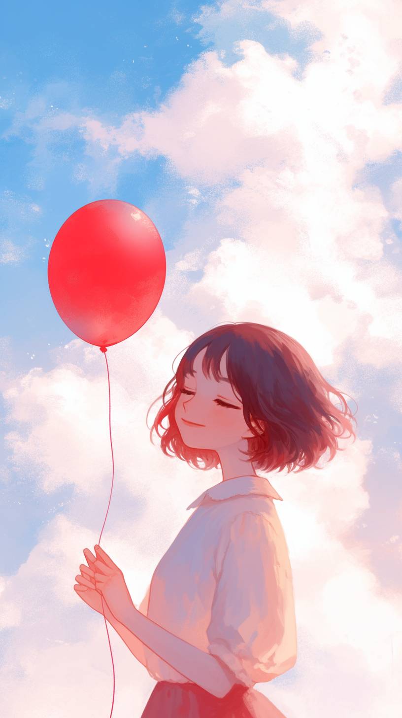 a sad, hopeful, red balloon --ar 9:16 --niji 6