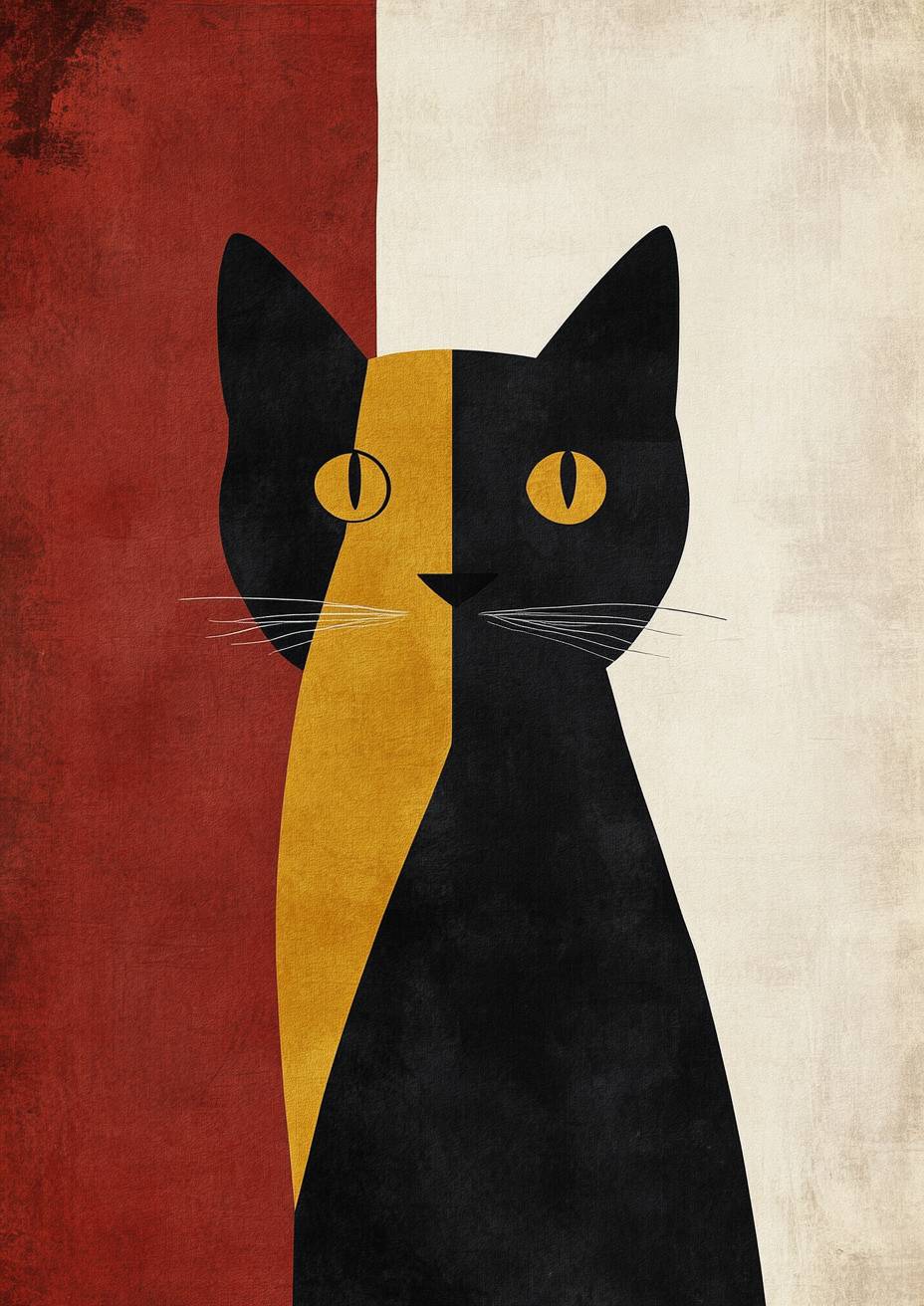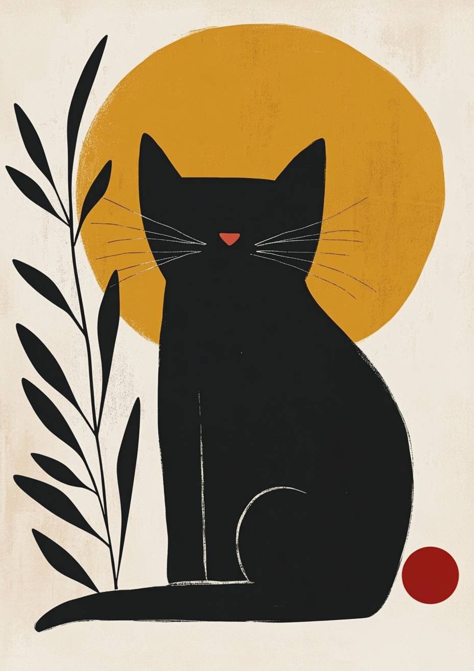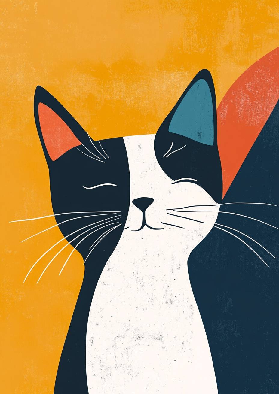 貓,簡約簡單線條,平面色彩,極簡主義。希臘藝術繪畫波希米亞現代簡約風格,質樸的風格。