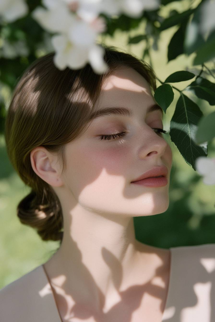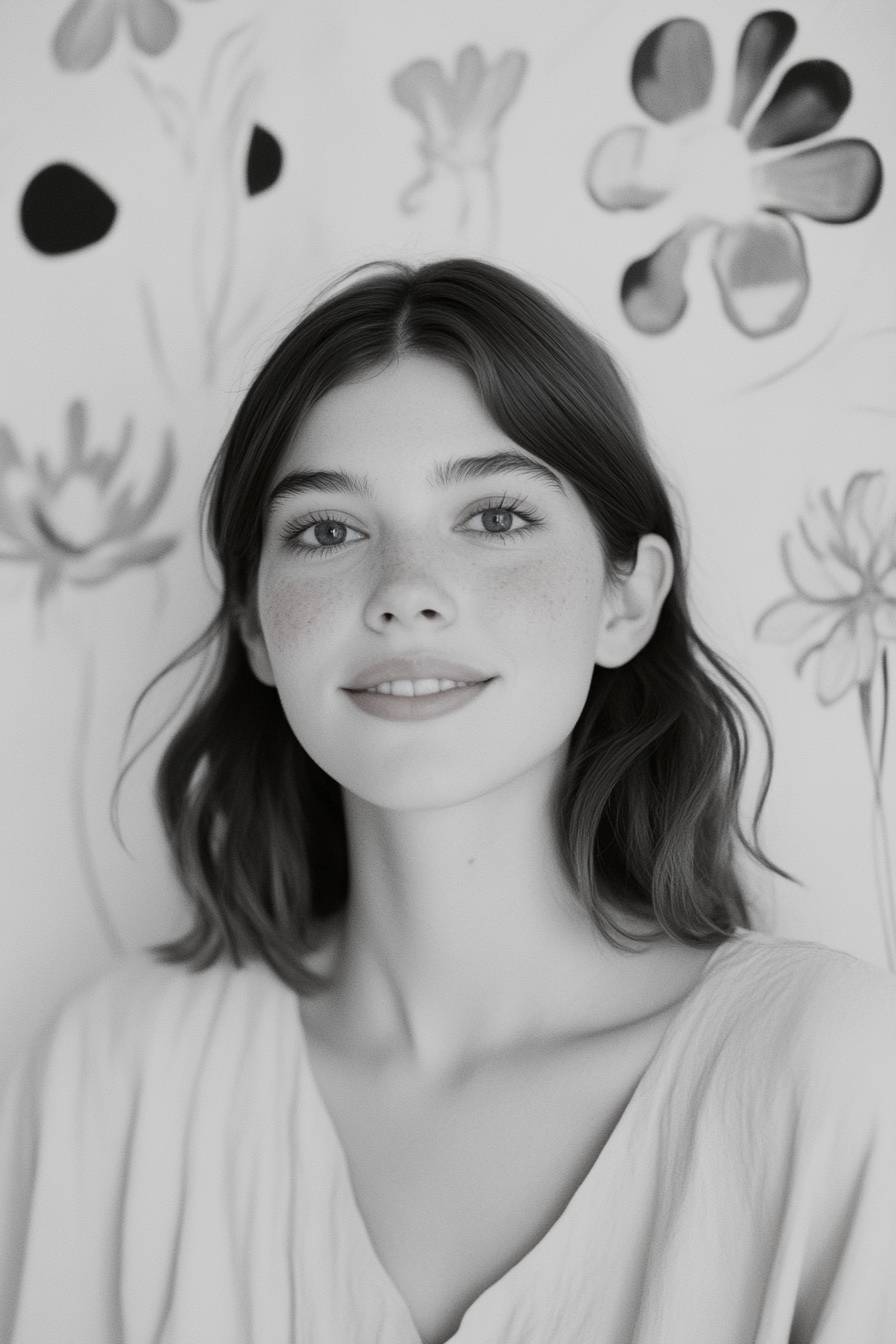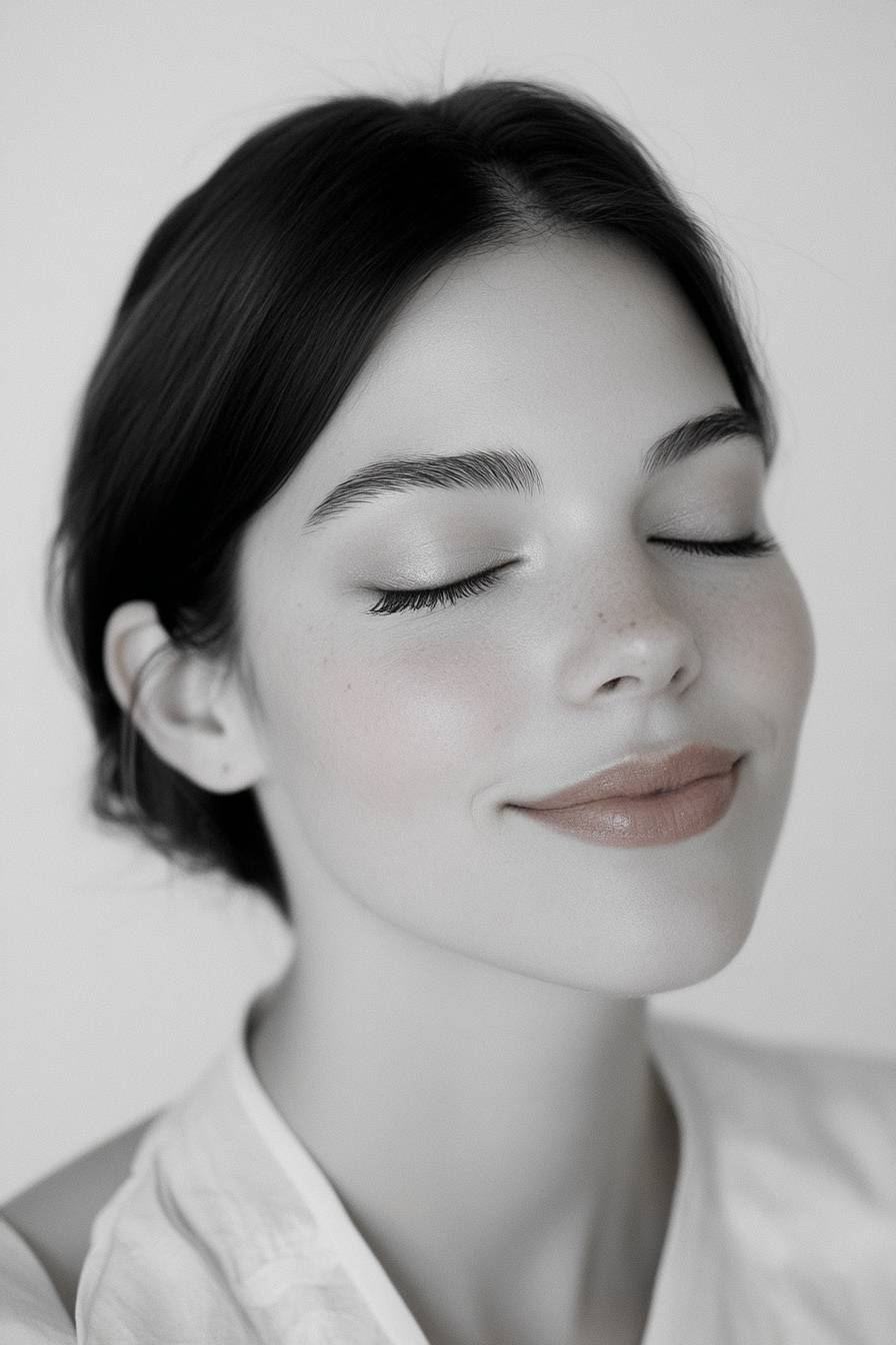 A woman with delicate features is smiling softly. --ar 2:3 --v 6.1 --sref 831