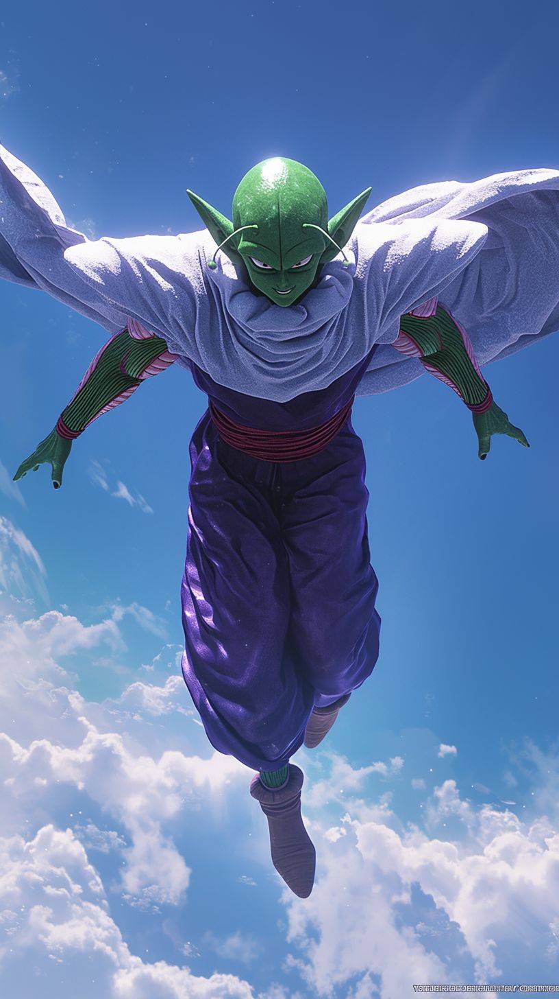 {name} 在天空飛翔,採用高動態範圍風格,萌系藝術,動畫插圖,Daz3D,異域現實主義,《龍珠》,生動的漫畫,特寫強度,日本風格