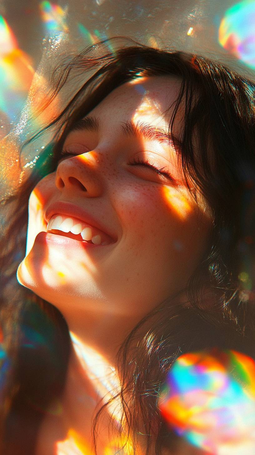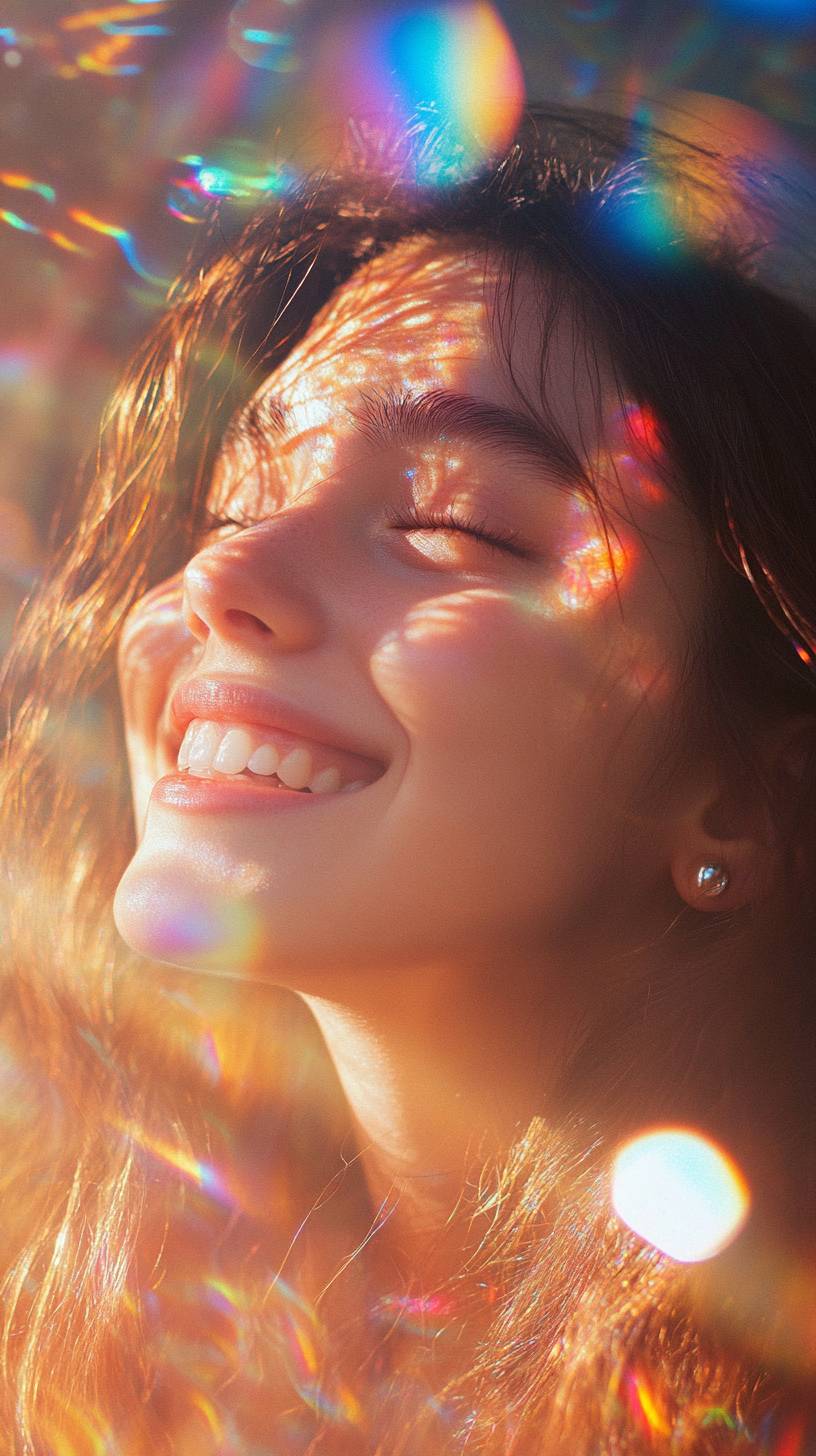 a girl prism happy smiling romantic dreamy full of daylight --ar 9:16 --v 6.1