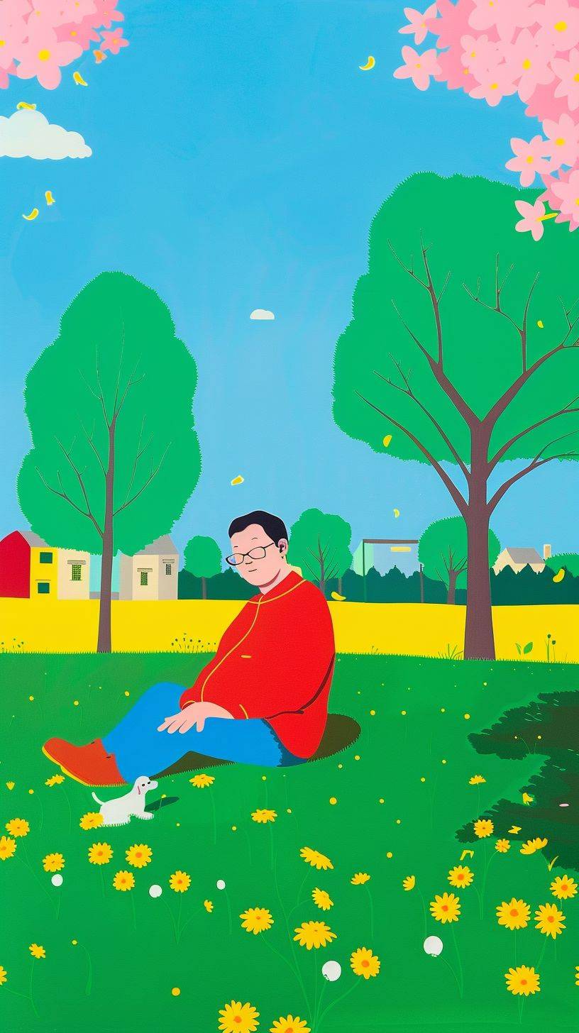 一隻白熊的上半身深深入睡,躺在地上,嘴微微張開,有一絲細密的口水滴落,溫暖的金色夕陽光照耀著,表情寧靜而幸福,暖光在毛髮上投射出柔和的橙色和粉色調,陰影自然地落在身體上,舒適的氛圍,電影般的氣氛,受到漫畫風格的啟發,簡單而乾淨的線條。