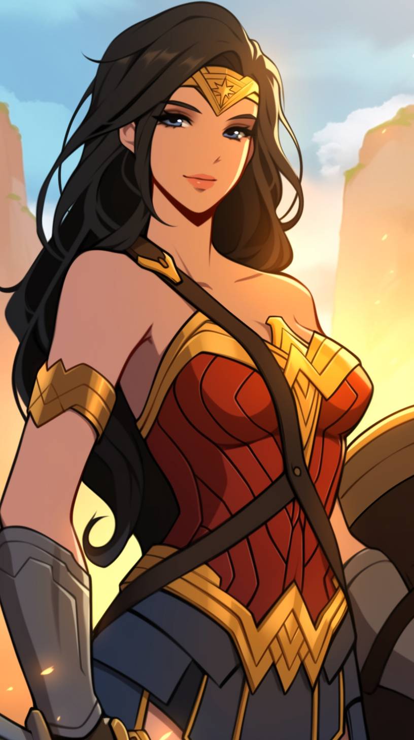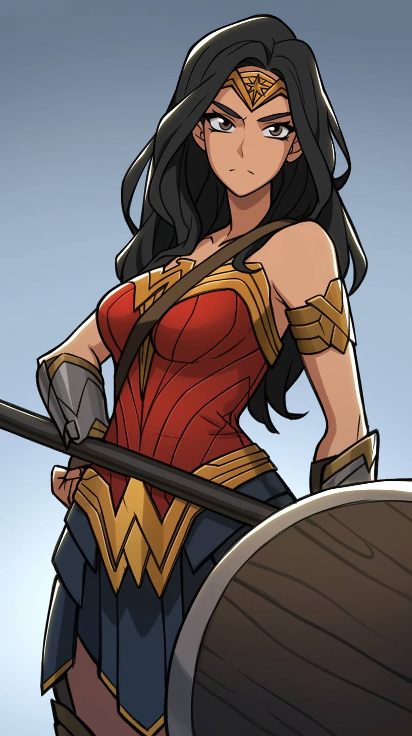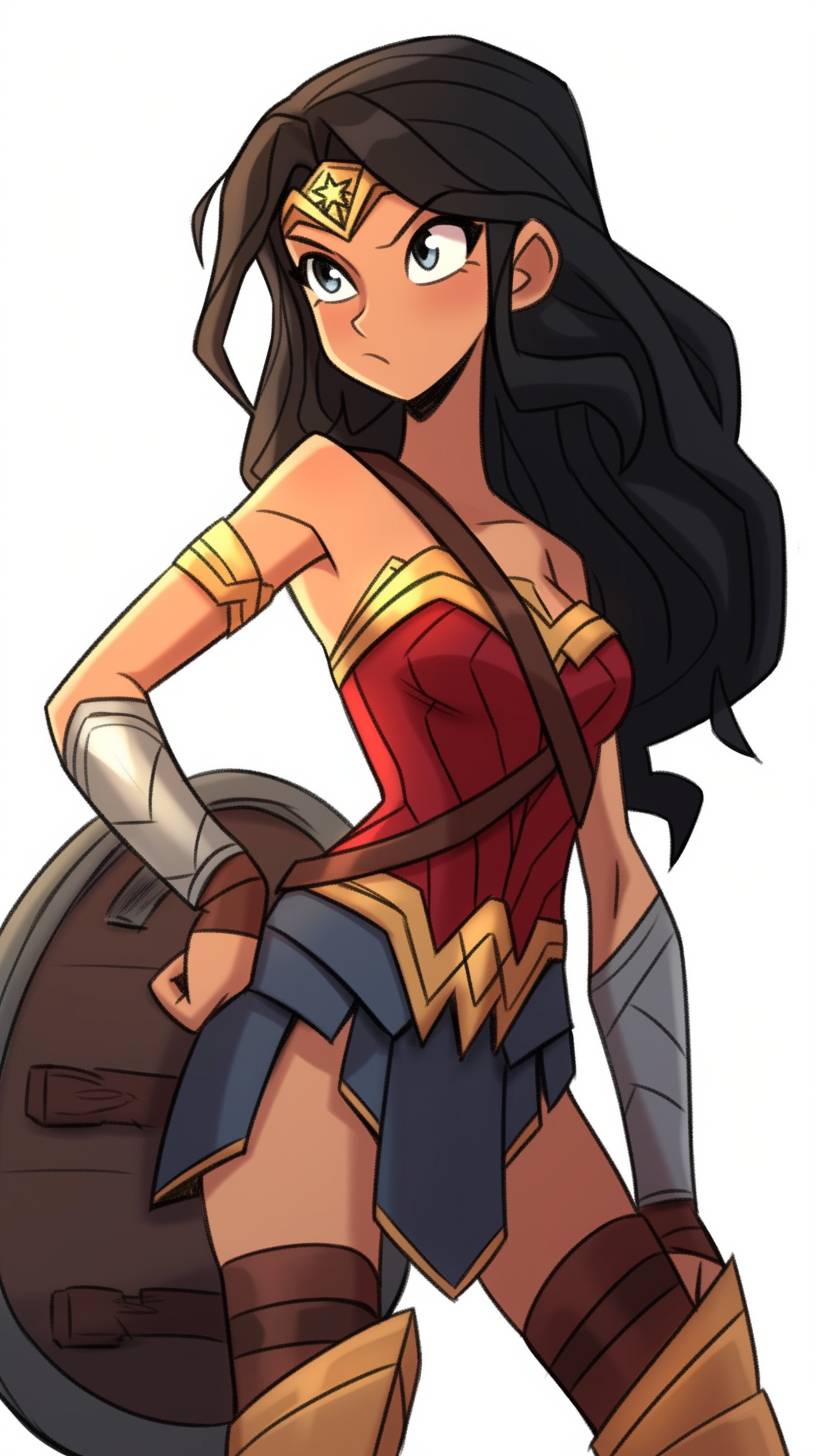 A simple drawing of Wonder Woman, in the style of Allie Brosh with simple lines, flat colors and a stick figure, minimalistic, simple background --ar 9:16 --style raw --sref 999707769 --niji 6