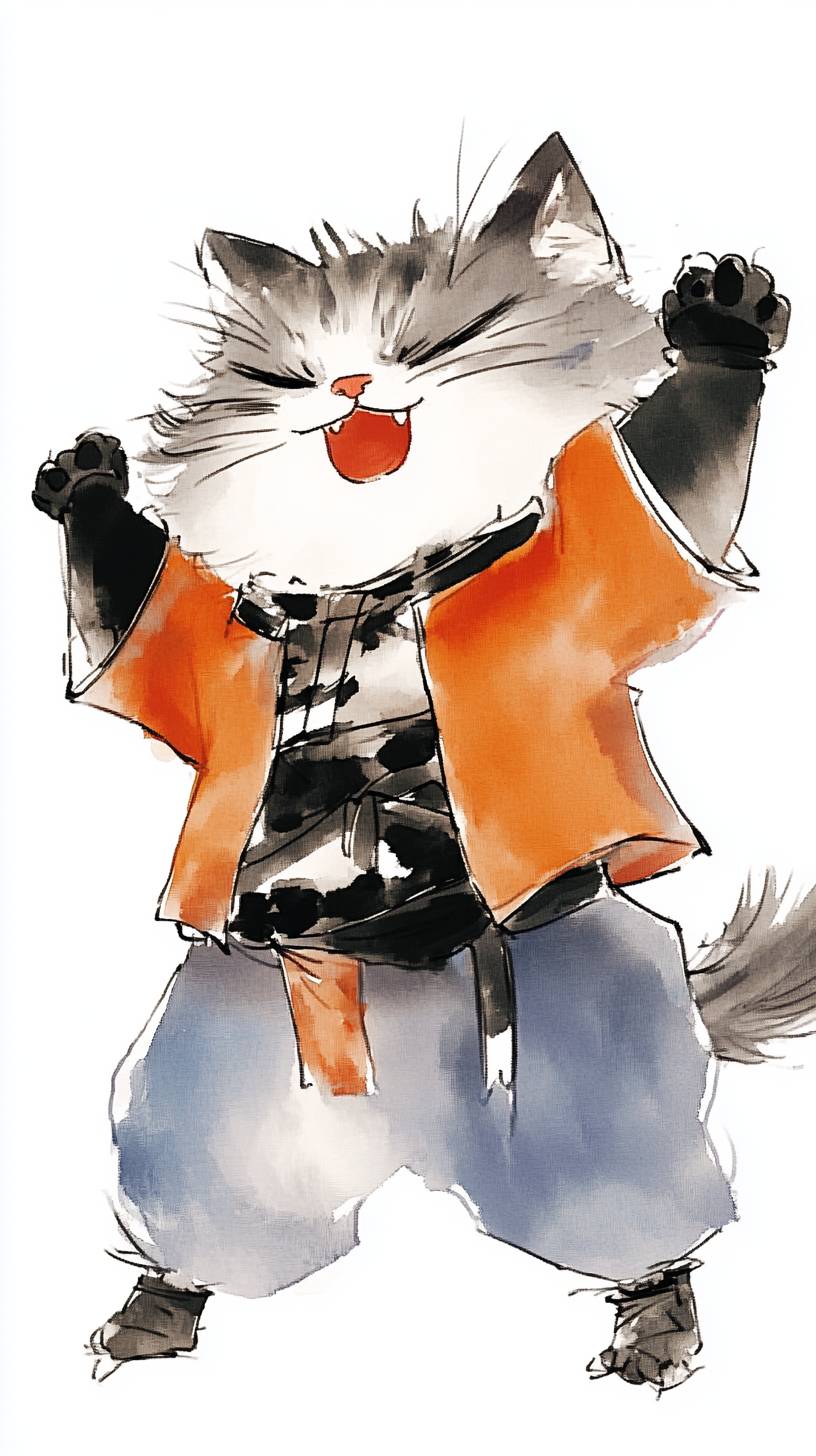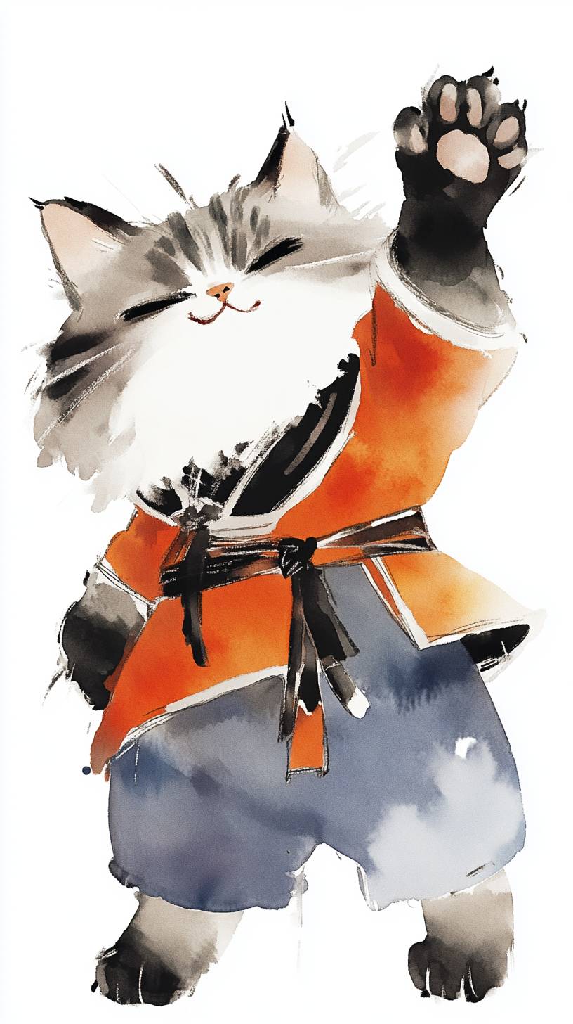 The Kind Cat Emperor,The cute cat wearing the clothes of the Qin Emperor,front view,left view,Anthropomorphic Cat,nature light,black eyes,pure white background,white background,smooth lines,clear brushstrokes, calligraphy and ink painting, pen and watercolor, Chinese style, Feng Zikai and Fu Baoshi art style, large scene. Comics, postmodern art, Gund art, white background, full-body portrait --ar 9:16 --sref <https://s.mj.run/1hObeQ4He2M> --sw 500 --cref <https://s.mj.run/5d8m7ozQtdo> --cw 100 --stylize 50 --v 6.1