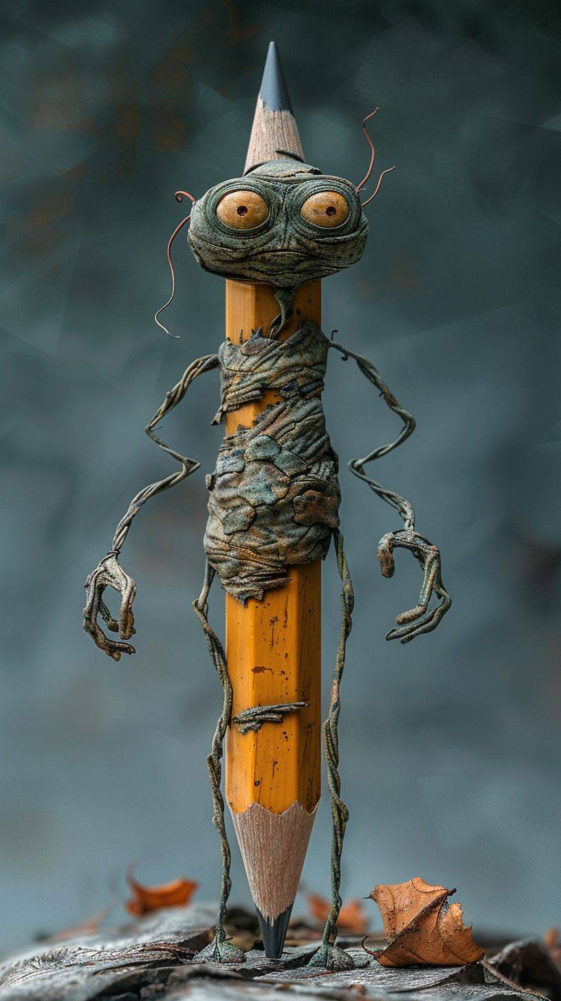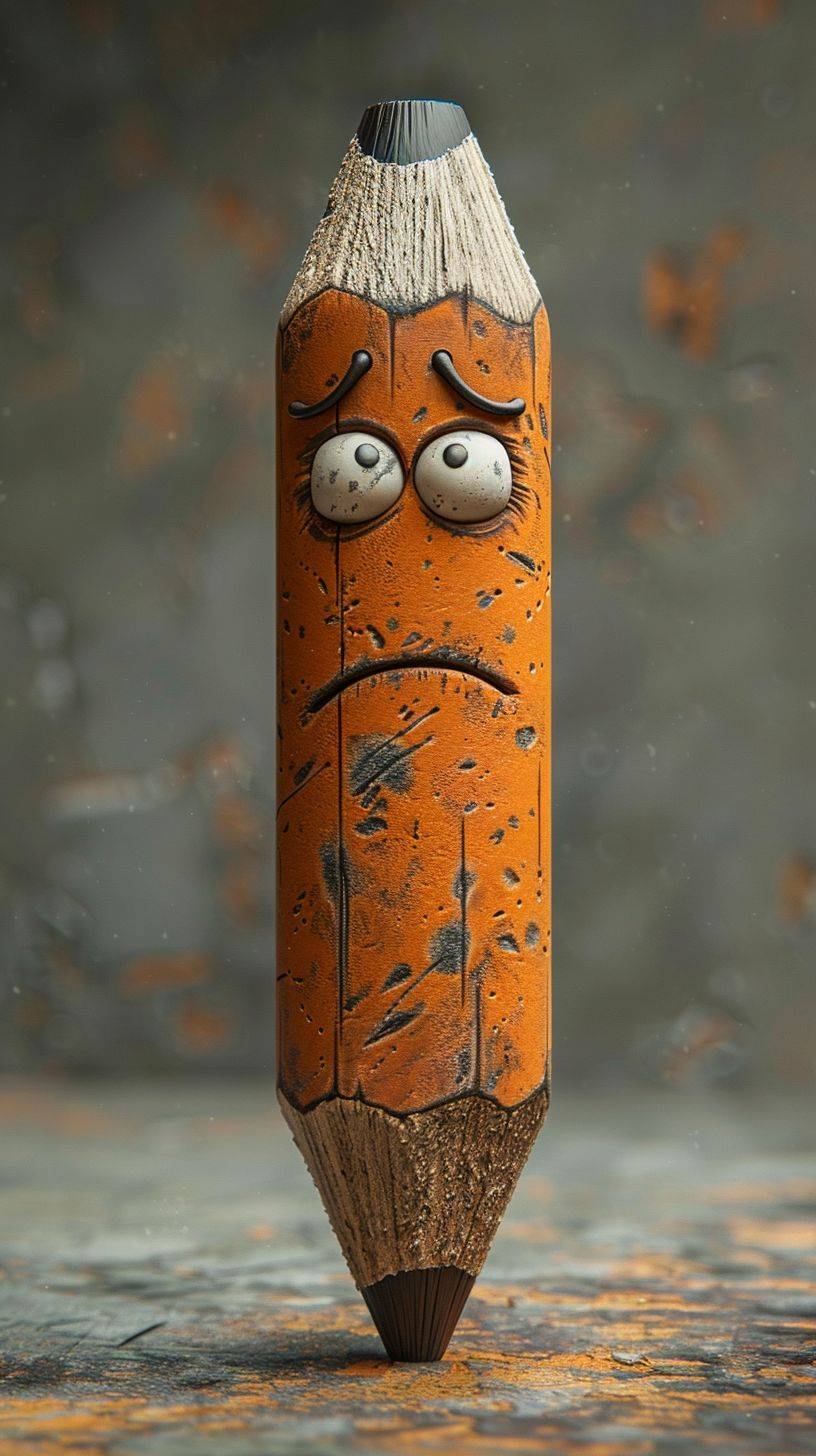 a pencil with an eraser as character with a human like face, with arms and legs. In the style of Disney --ar 9:16 --stylize 750