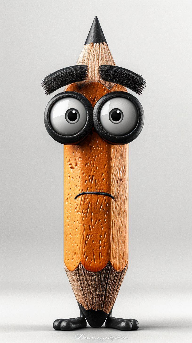 一支帶橡皮的鉛筆,擁有人類相似的面孔,配有手臂和腿。風格類似於迪士尼