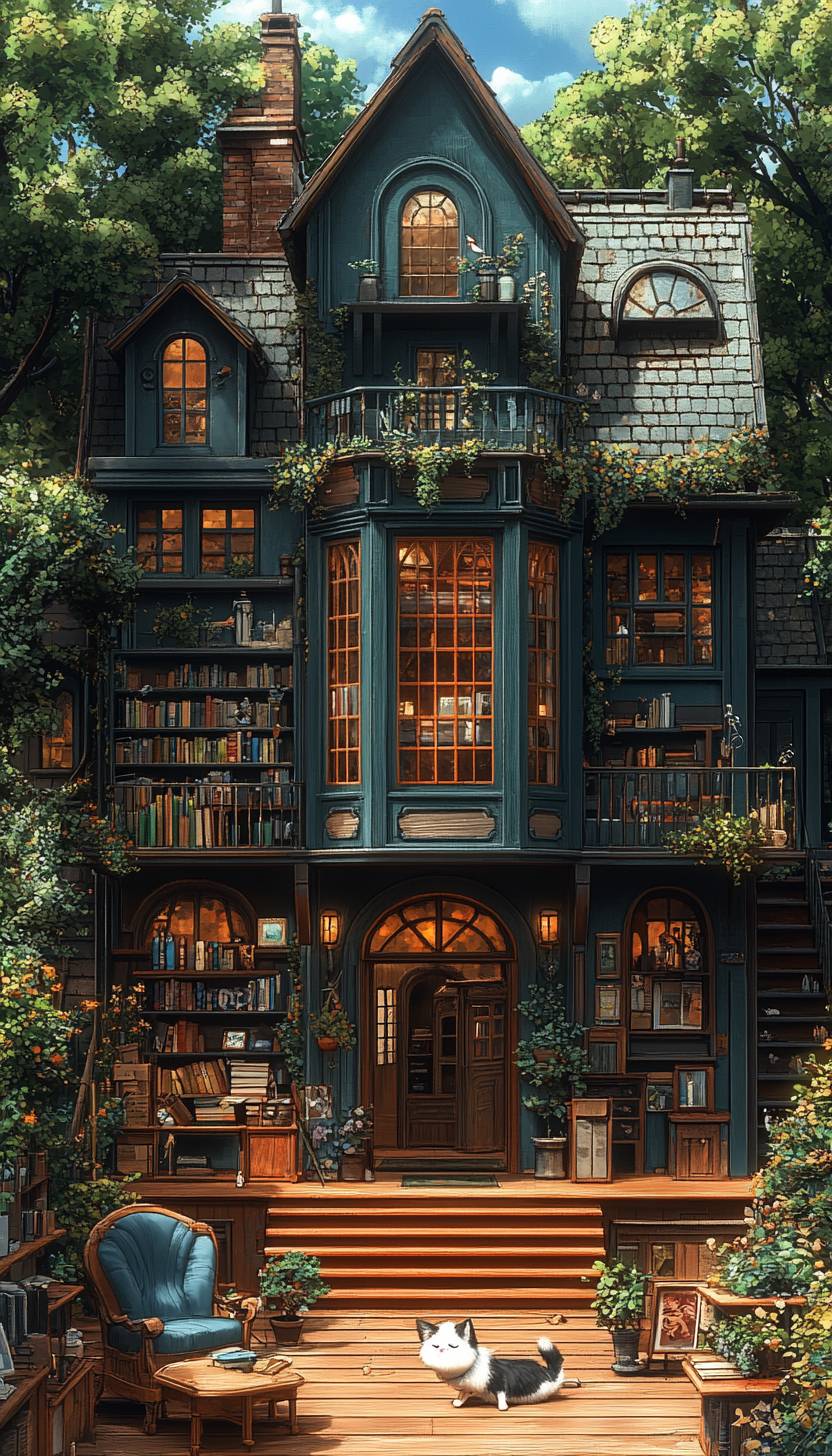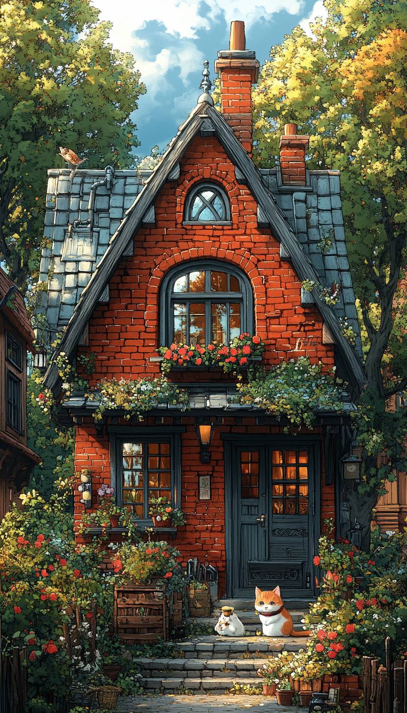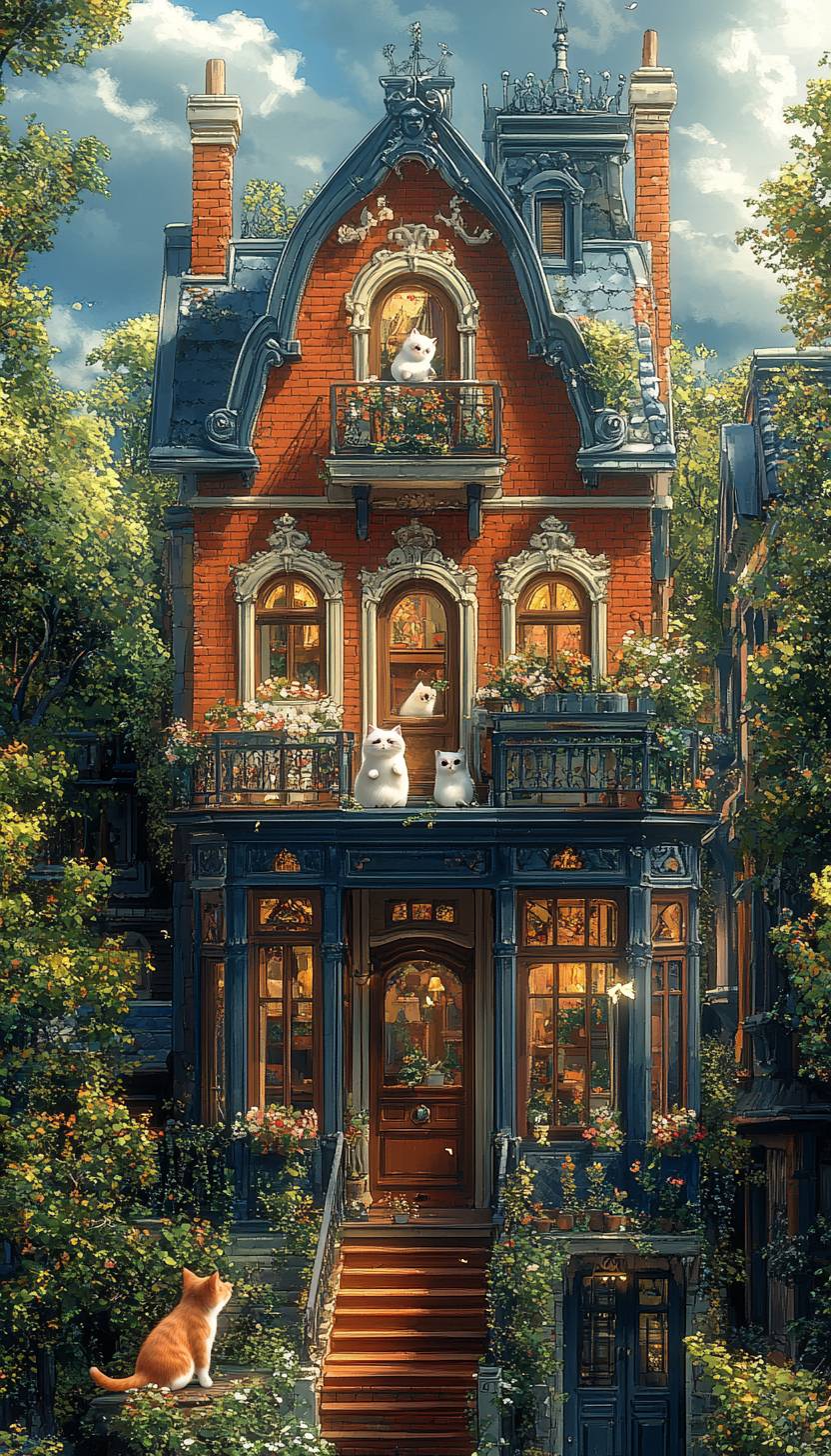 懷舊卡通:甜狗和甜貓在19世紀經典屋舍中玩耍