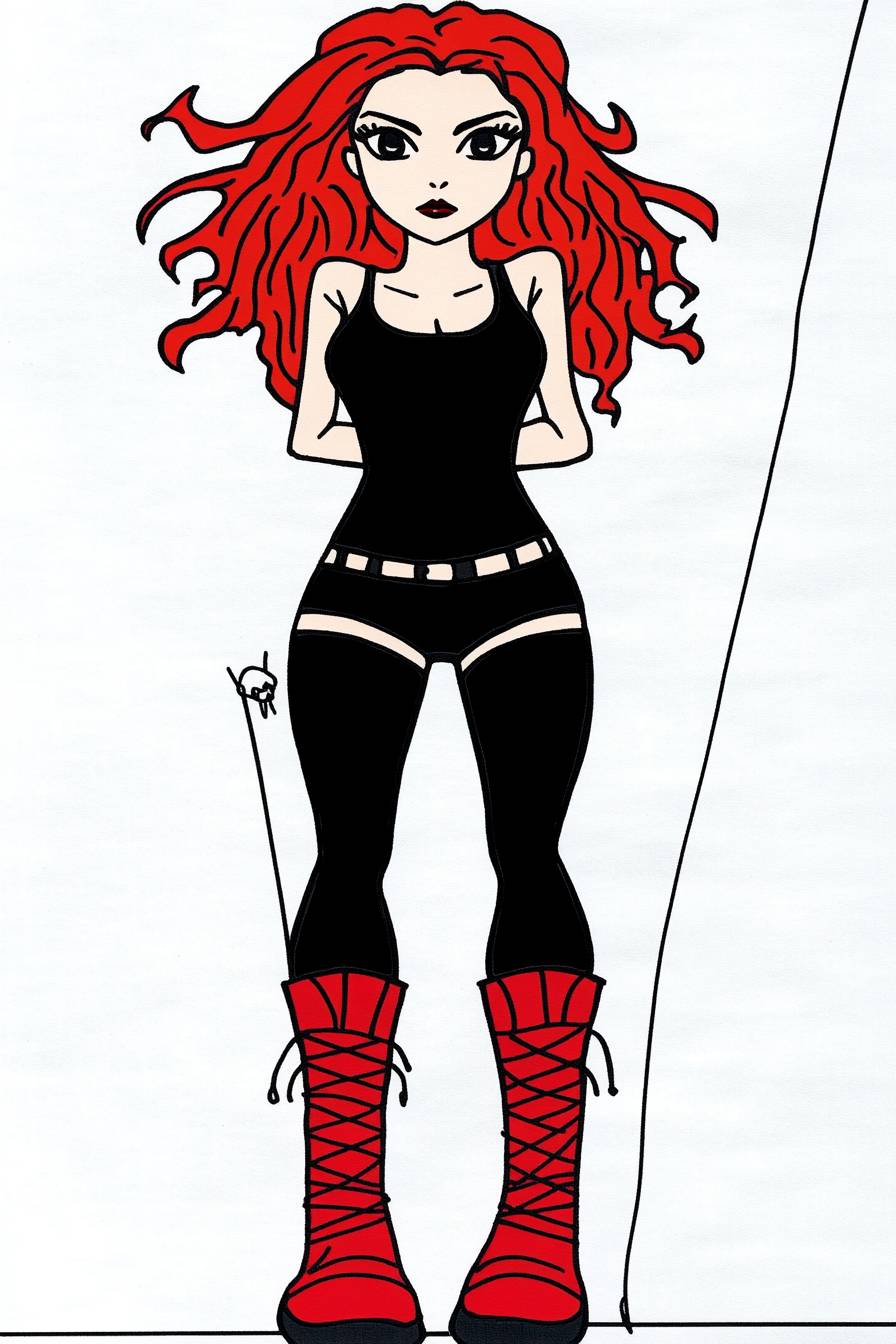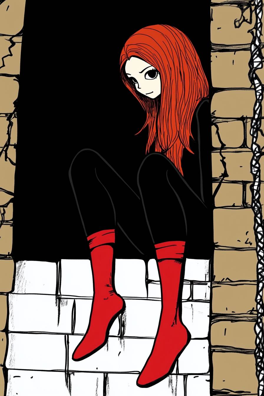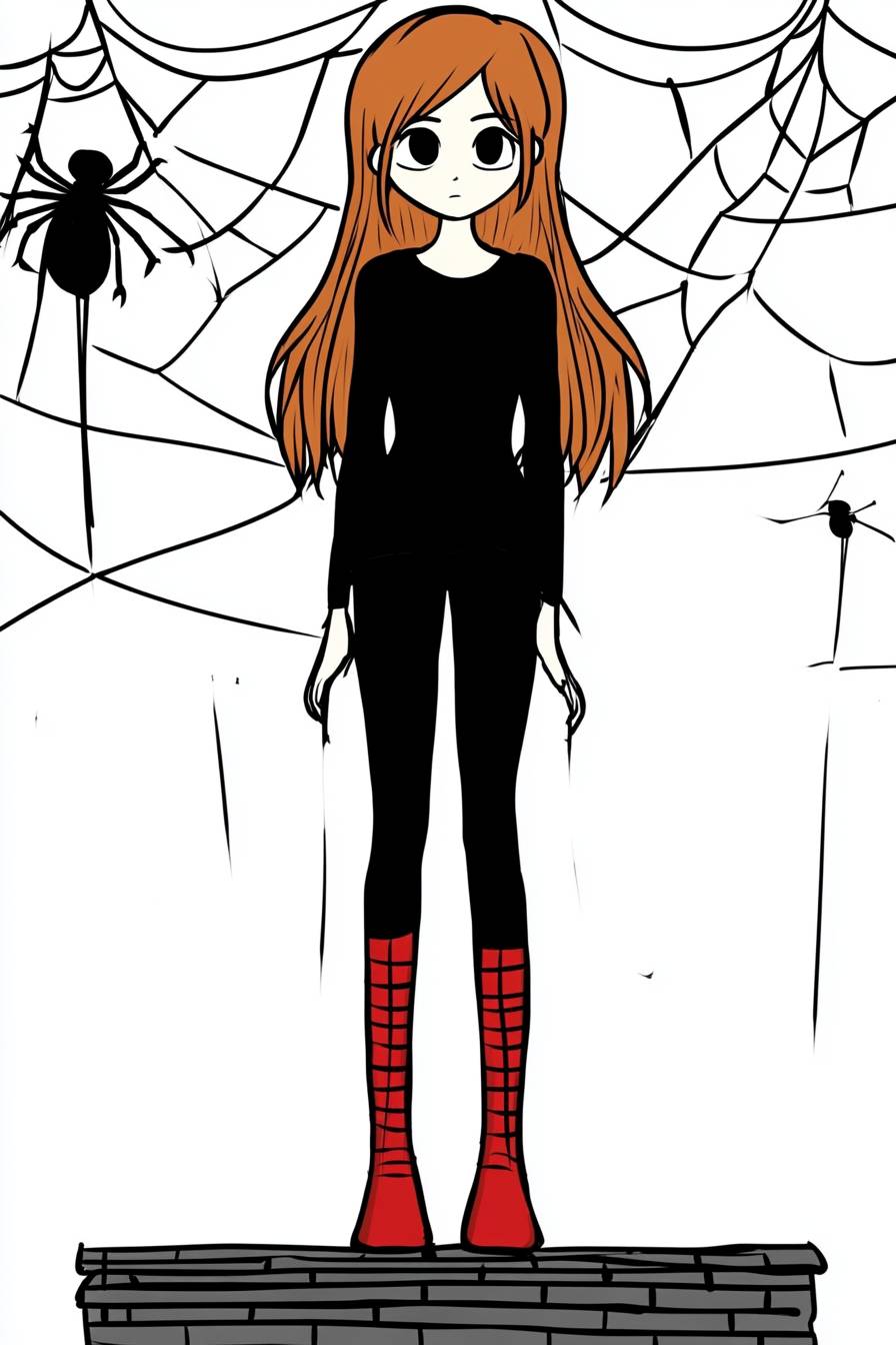 The black widow wearing red socks. --sref 3778842373 --ar 2:3 --v 6.1
